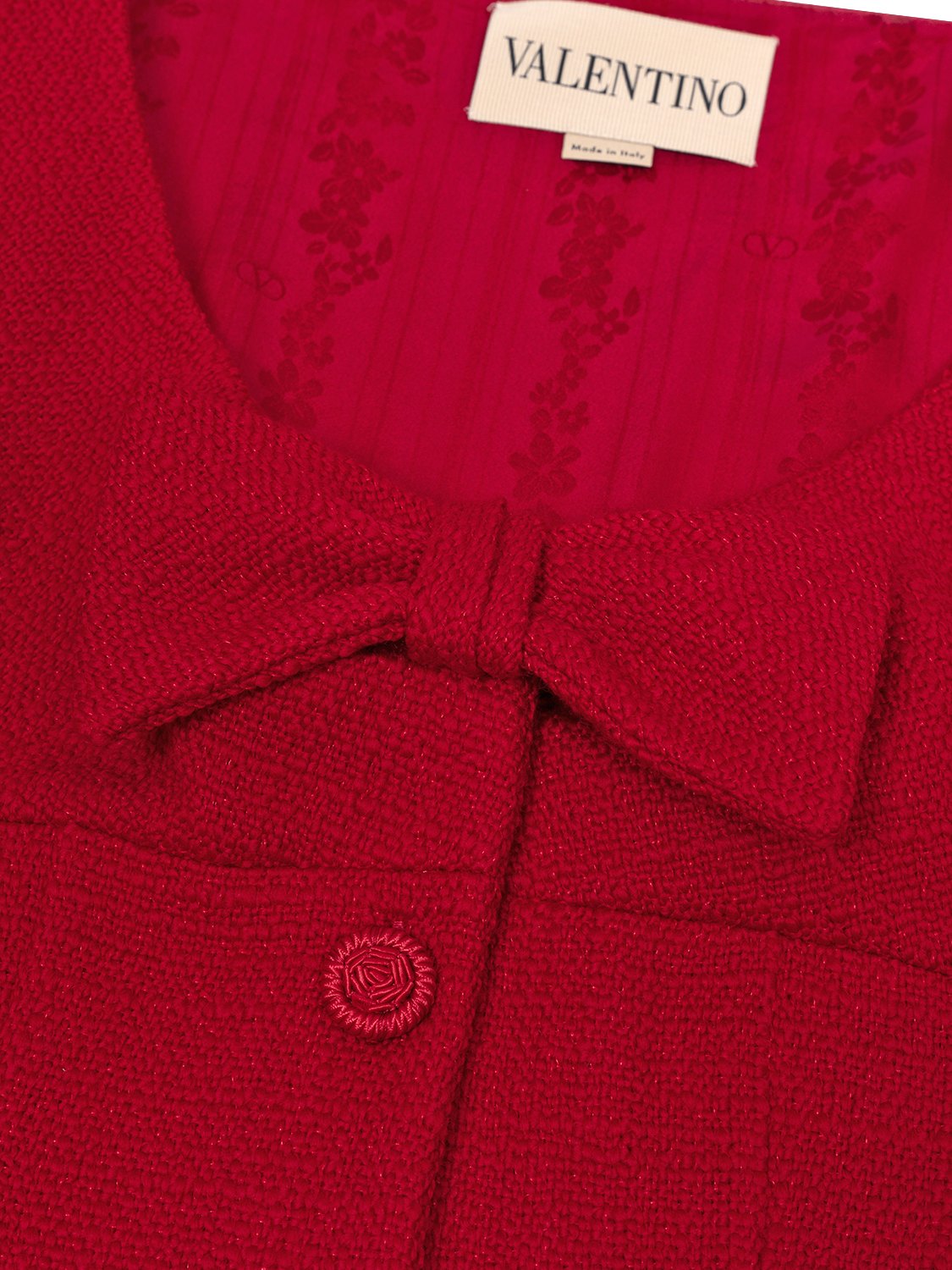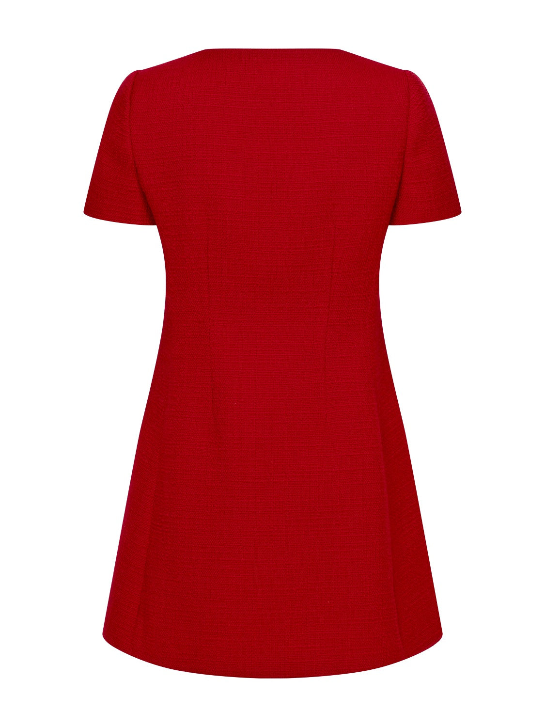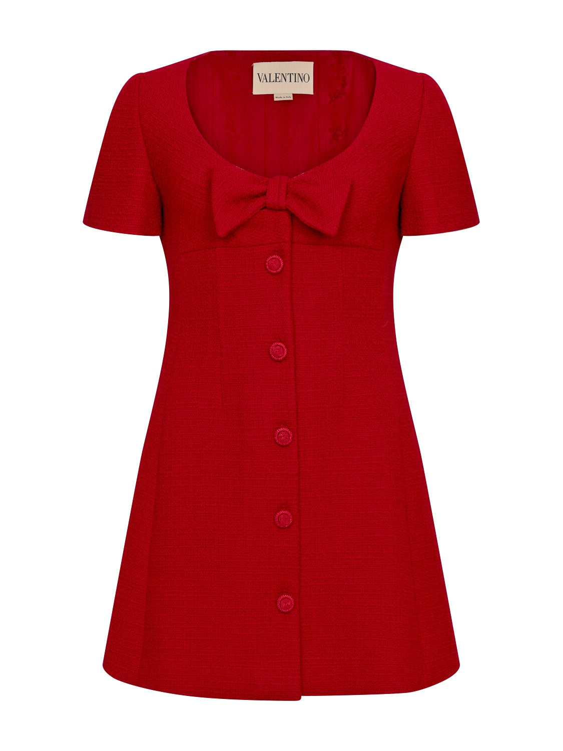 Mit diesem raffinierten Minikleid bleibt Valentino seiner unverkennbaren Handschrift treu. Das Modell wurde in Italien aus einem hochwertigen Wollgemisch gefertigt und präsentiert sich in klassischem, strukturiertem Tweed. Die gerade Silhouette wird durch eine durchgehende Knopfleiste auf der Vorderseite betont, während dezente Details dem Design eine zeitlose und zugleich moderne Ausstrahlung verleihen – perfekt für elegante Auftritte mit modischem Anspruch.