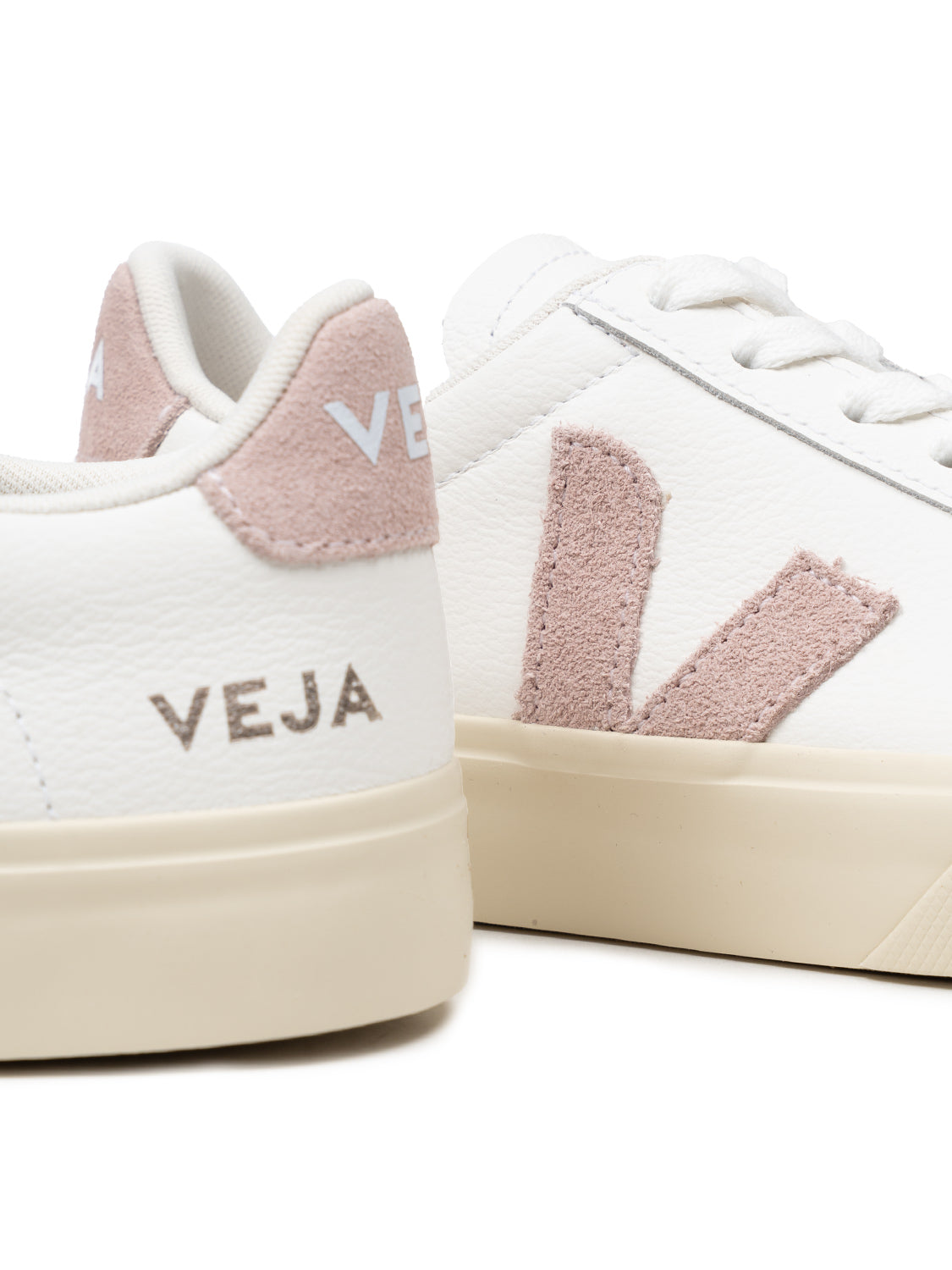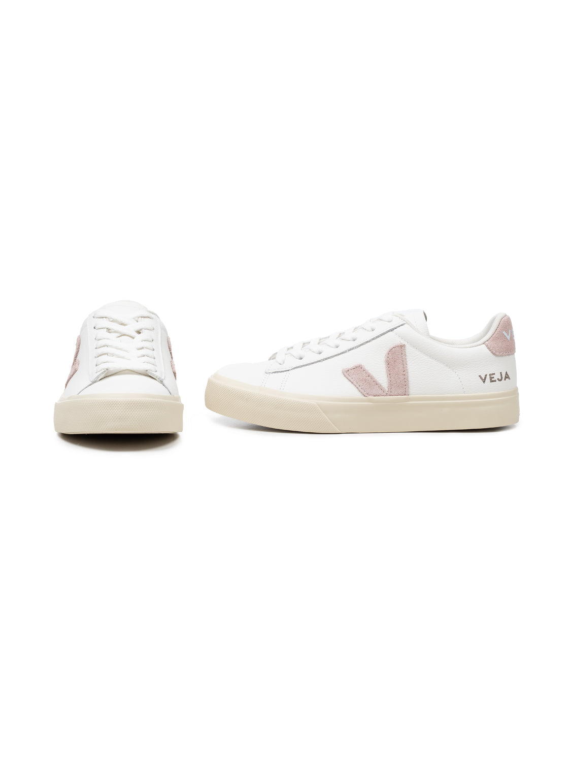 Der Campo Sneaker in Extra White besitzt eine runde Zehenpartie, eine Schnürung mit Schnürsenkeln aus Bio-Baumwolle sowie ein Veja-Branding an Fersen-Patch und Zunge. Vom ikonischen Monogramm-Detail an den Seiten in Rosa wird das lässige Modell gekonnt vollendet.