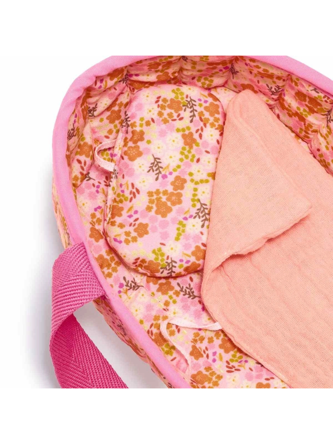 info@djeco.com- Lieferumfang: 1 Puppe von 20 cm Länge (weicher Körper aus Stoff und Kopf, Arme und Beine aus Vinyl), 1 Babykörbchen, 1 Decke, 1 Kissen