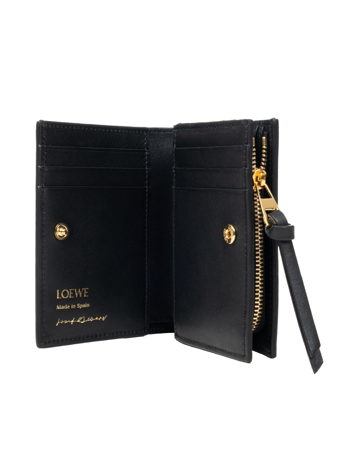 Die kompakte Brieftasche aus weichem Nappa-Kalbsleder ist von Josef Albers’ Serie „Huldigung an das Quadrat“ inspiriert und Teil der exklusiven Loewe x Josef und Anni Albers Kollektion. Das Design zeichnet sich durch kunstvoll gearbeitete Intarsienquadrate aus, die der Brieftasche eine moderne, grafische Note verleihen. Sie verfügt über sechs Kartenfächer, drei interne Steckfächer sowie ein Münzfach mit Reißverschluss, das mit einem Knoten-Zugband aus Kalbsleder versehen ist, und wird durch einen praktischen Druckknopfverschluss sicher verschlossen. Das Futter aus hochwertigem Kalbsleder sorgt für ein angenehmes Tragegefühl, während die Loewe-Prägung einen dezenten, luxuriösen Akzent setzt. So vereint dieses Accessoire künstlerische Inspiration, exklusive Materialien und durchdachte Funktionalität in einem kompakten, stilvollen Format.