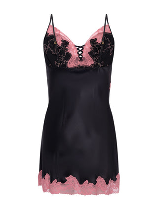 Bonnie Babydoll aus schwarzem Satin und rosa Spitze