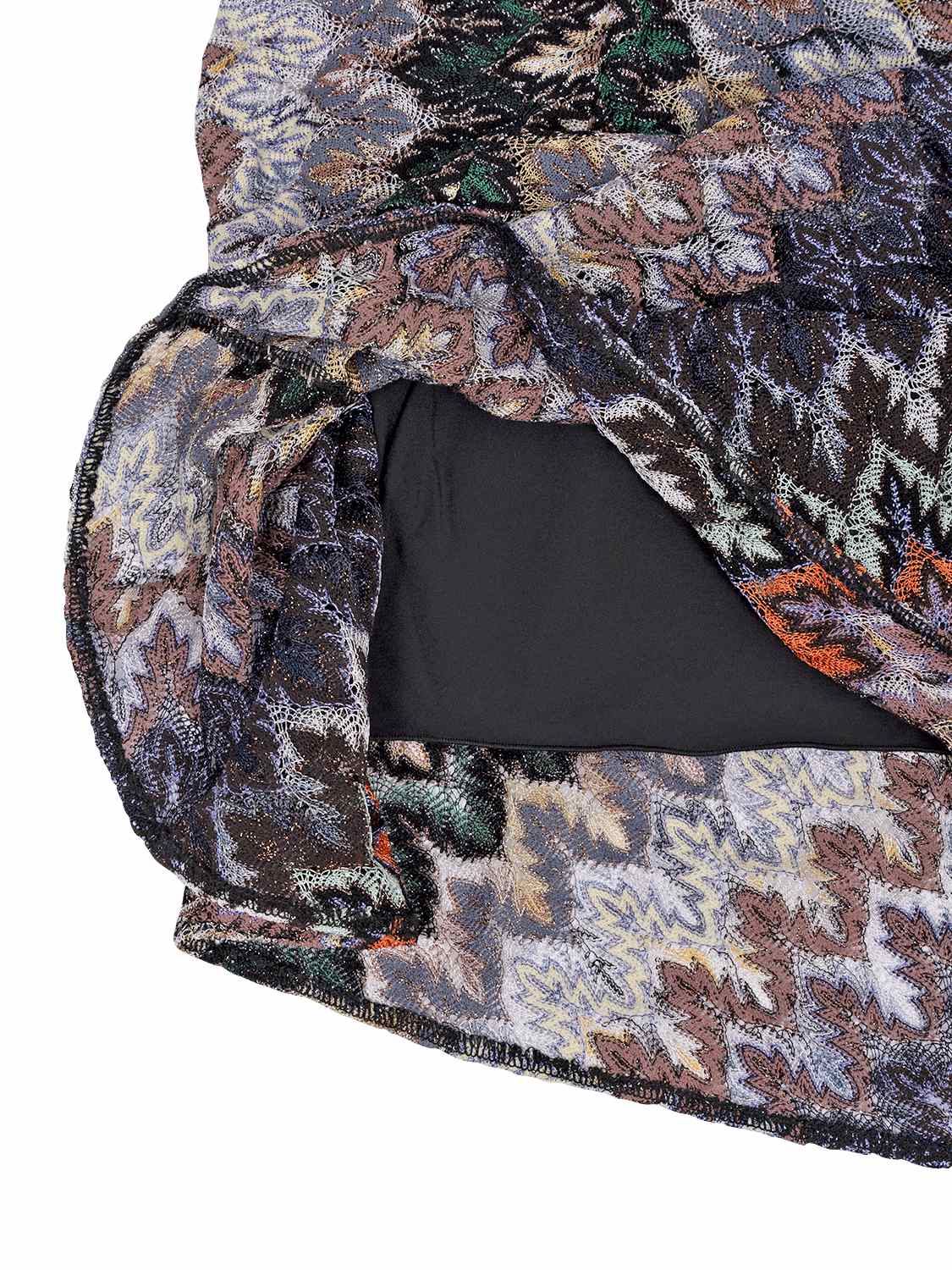 Das Kleid von Missoni präsentiert sich in einem farbenfrohen Design und spiegelt die typische Strickkunst des italienischen Modehauses wider, das besonders für seine markanten Zickzack-Muster bekannt ist. Auch dieses Modell überzeugt mit dem charakteristischen Zackenmuster und verleiht dem Look eine lebendige, sommerliche Ausstrahlung. Die taillierte Passform mit V-Ausschnitt betont die feminine Silhouette, während ein Knoten-Detail und dezente Teilungsnähte stilvolle Akzente setzen. Die semi-transparente, elastische Verarbeitung sorgt für angenehmen Tragekomfort, ergänzt durch ein passendes Unterkleid. Insgesamt entsteht so ein elegantes und zugleich modernes Kleid von Missoni, das sich ideal für sommerliche Styles eignet.