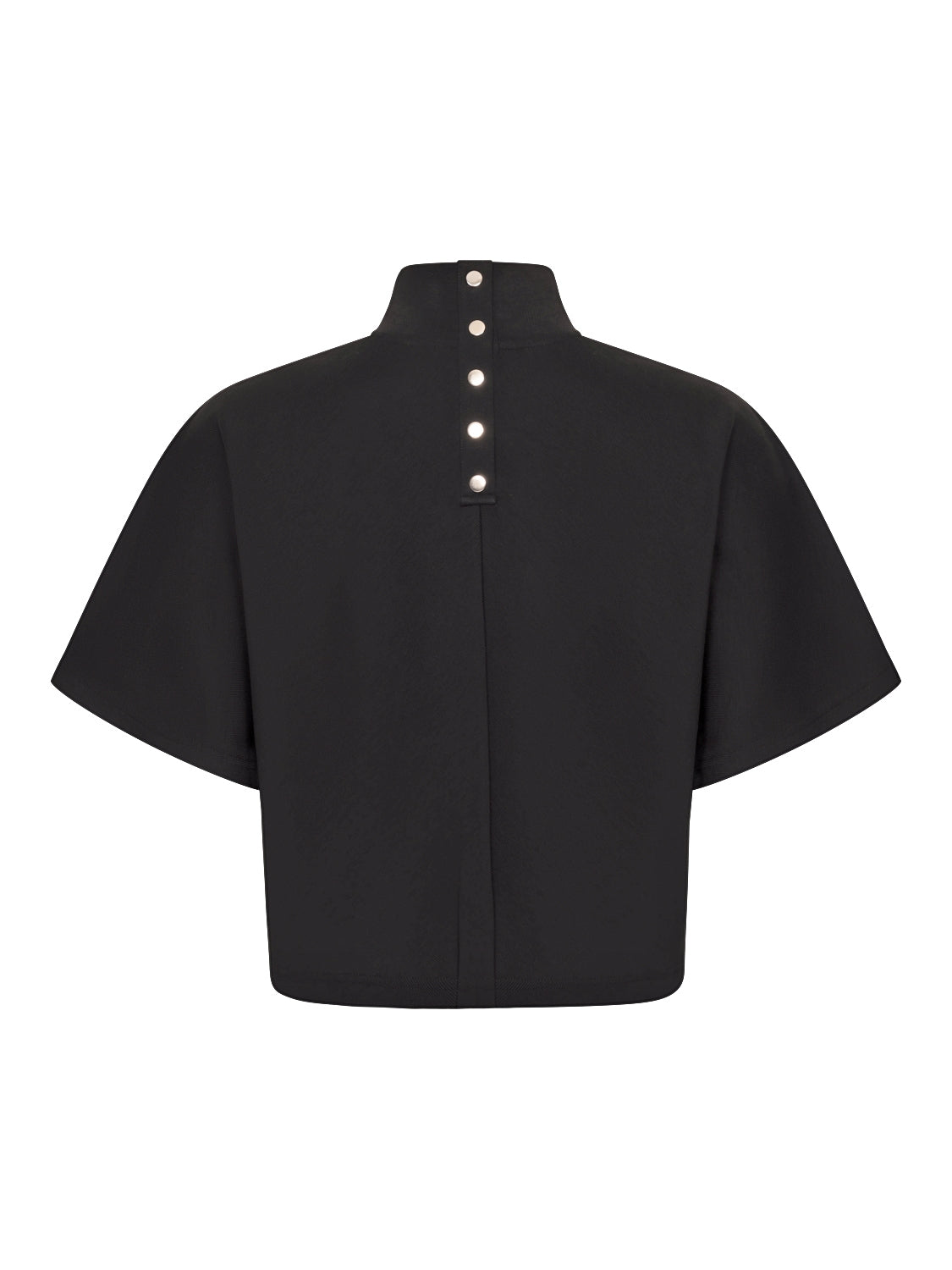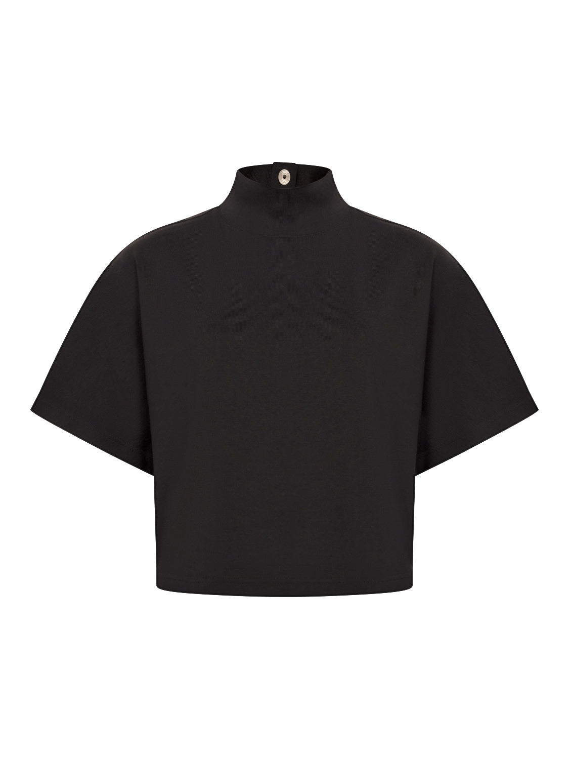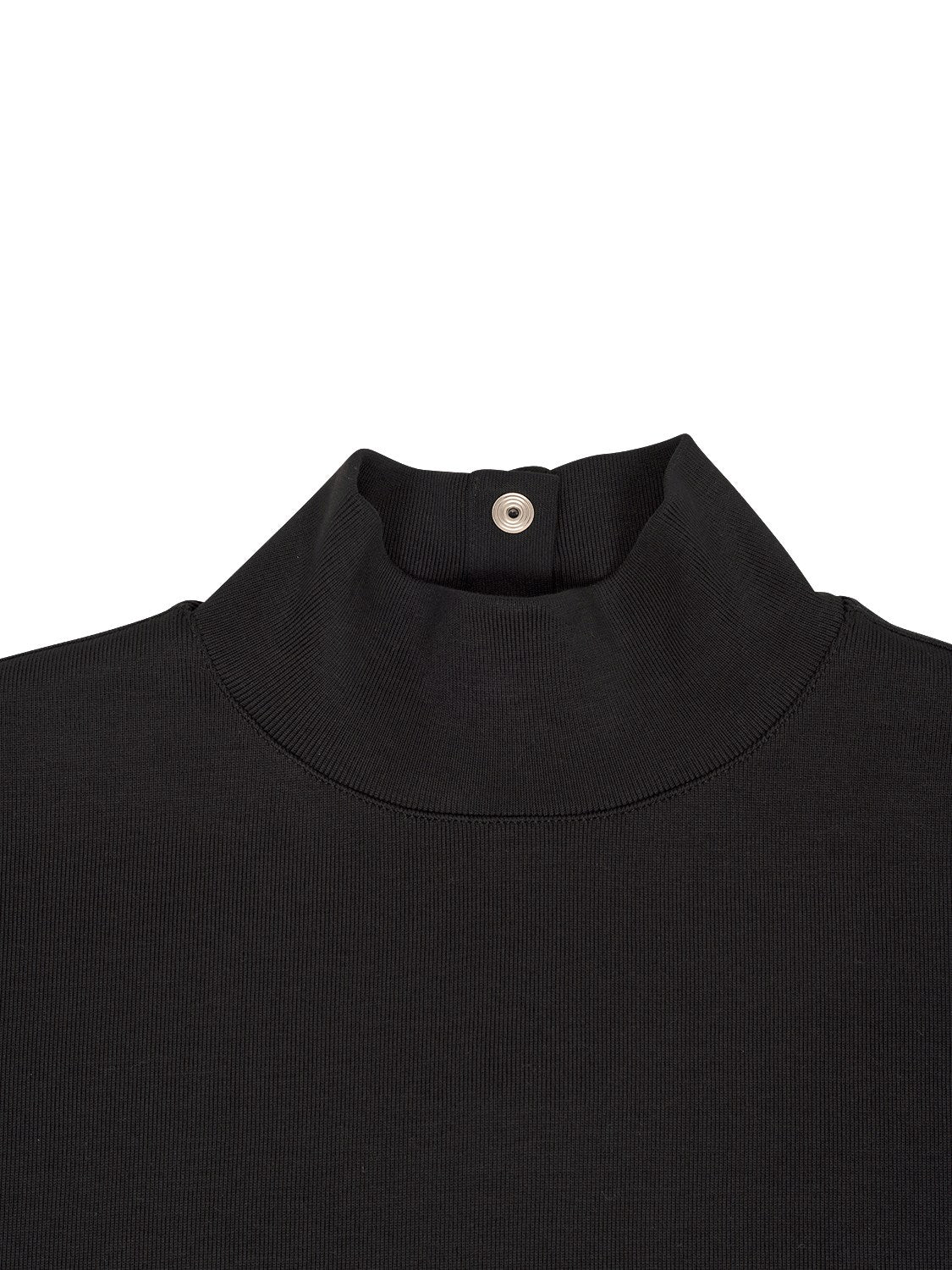 Hochgeschlossenes T-Shirt aus gerippter Baumwolle - Schwarz