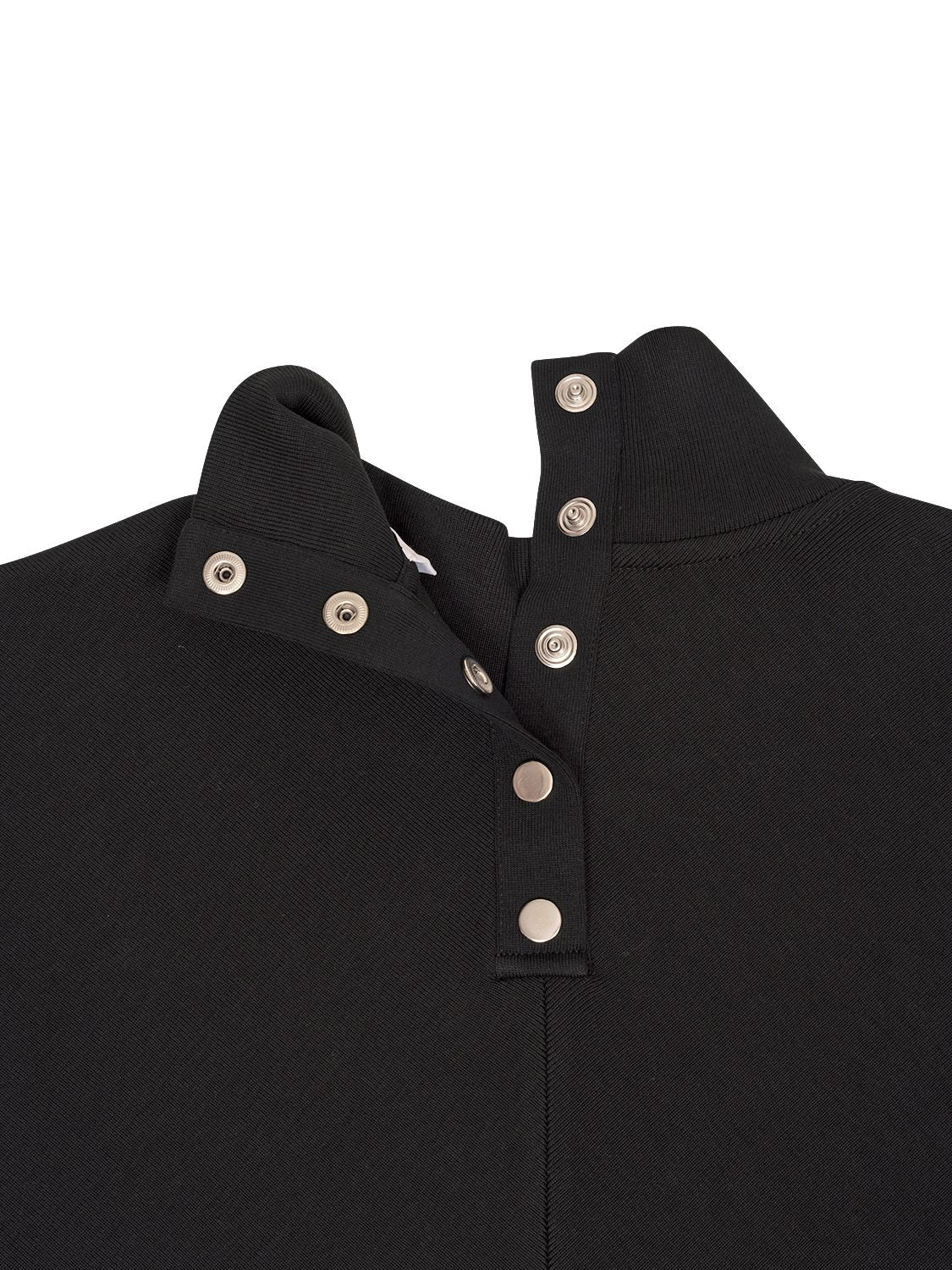 Ein dezenter Druckknopfverschluss am Rücken rundet das Design funktional und stilvoll ab – ein vielseitiges Essential mit minimalistischer Raffinesse.