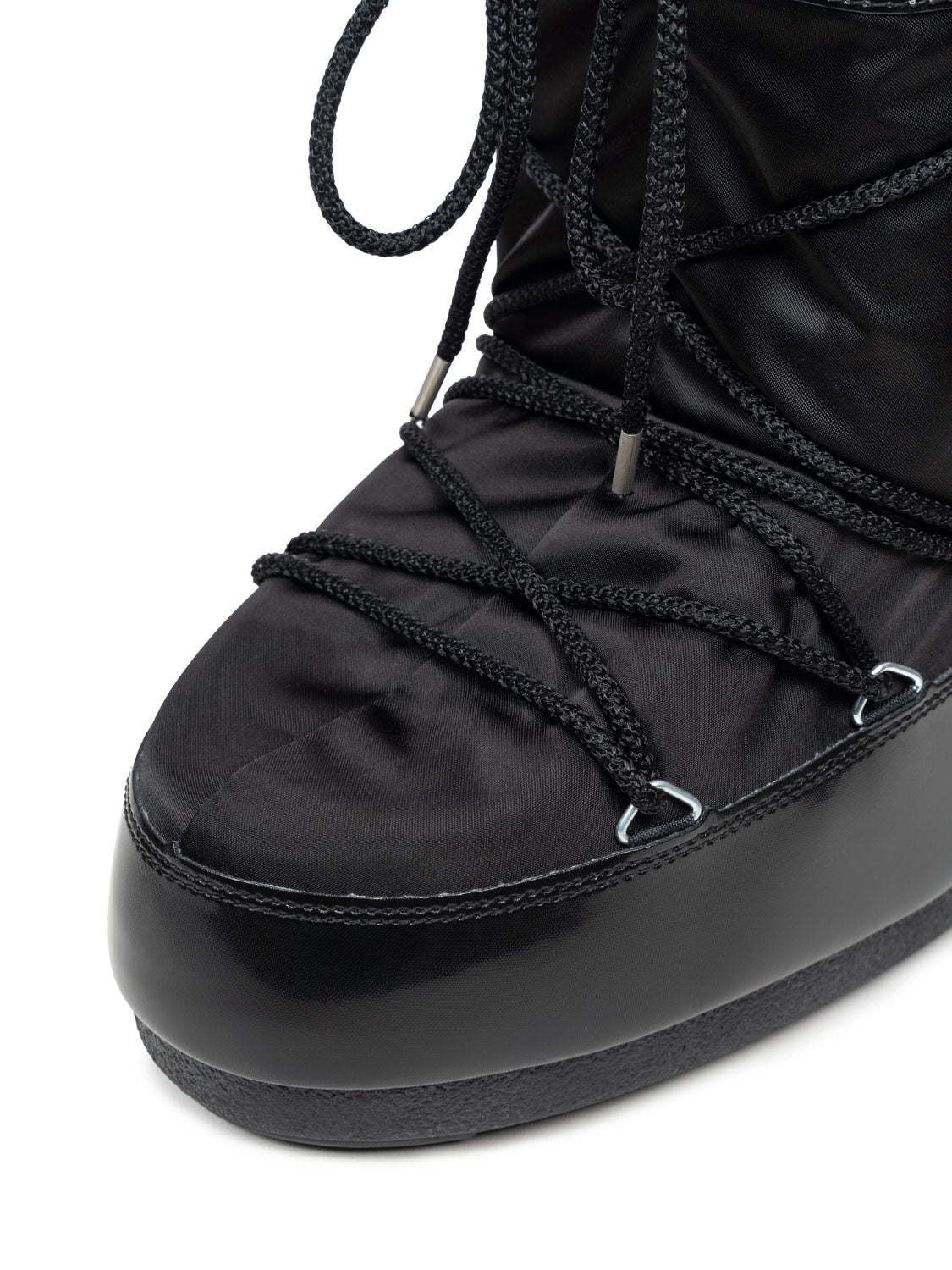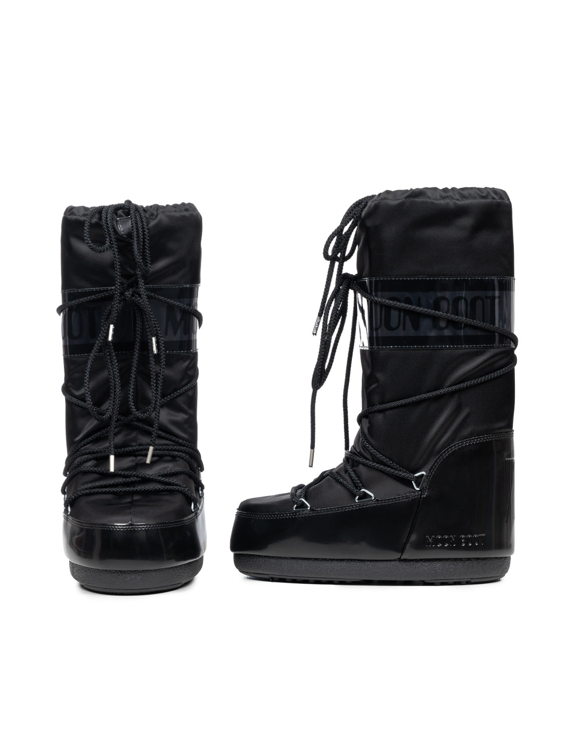 Der Icon Glance Stiefel in schwarzem Satin verbindet modernen Glanz mit ikonischem Moon-Boot-Design und überzeugt durch sein geschlechtsneutrales, vielseitiges Erscheinungsbild. Das satinierte Obermaterial verleiht dem Schuh eine elegante Note, während PVC-Details an Ferse und Besatz für Struktur und Halt sorgen. Silberfarbene Metallösen, gekreuzte röhrenförmige Schnürsenkel und ein verstellbarer Kordelzug runden das sportlich-edle Design ab. Die thermoplastische Zwischensohle und die profilierte Gummisohle bieten angenehme Dämpfung und sicheren Halt, während das Mehrgrößen-Schaumfutter eine optimale Passform garantiert. Durch das praktische Slip-on-Design lässt sich der Stiefel mühelos anziehen und komfortabel tragen. Ein Logopatch auf der Vorderseite sowie der charakteristische Logoprint an der Ferse unterstreichen die Markenidentität. Beidseitig tragbar und stilistisch vielseitig, ist der Icon Glance Schwarz Satin die perfekte Verbindung aus urbanem Chic, Komfort und innovativem Design.