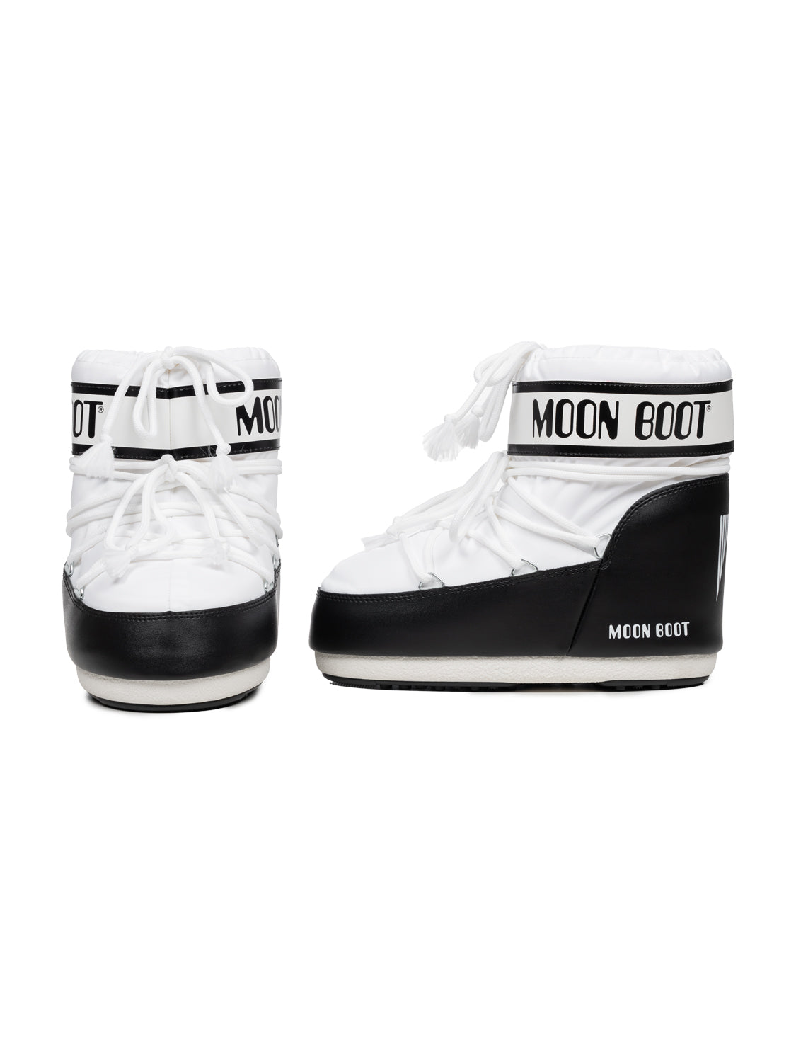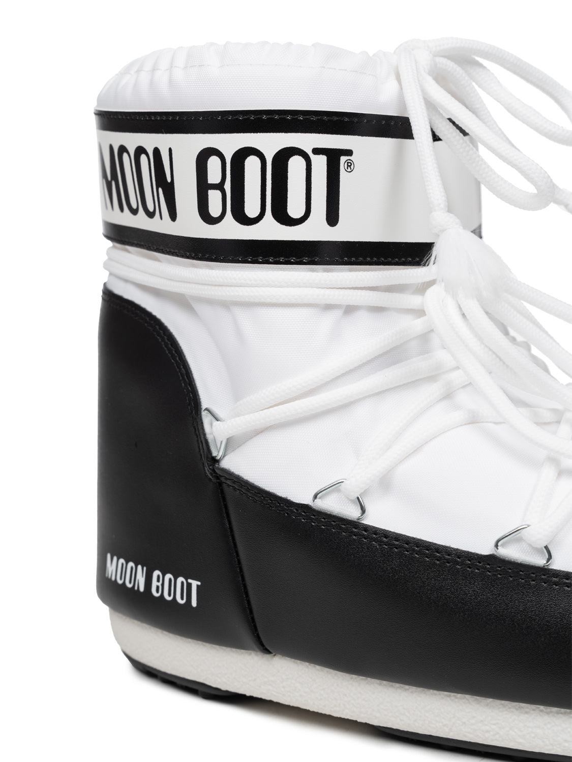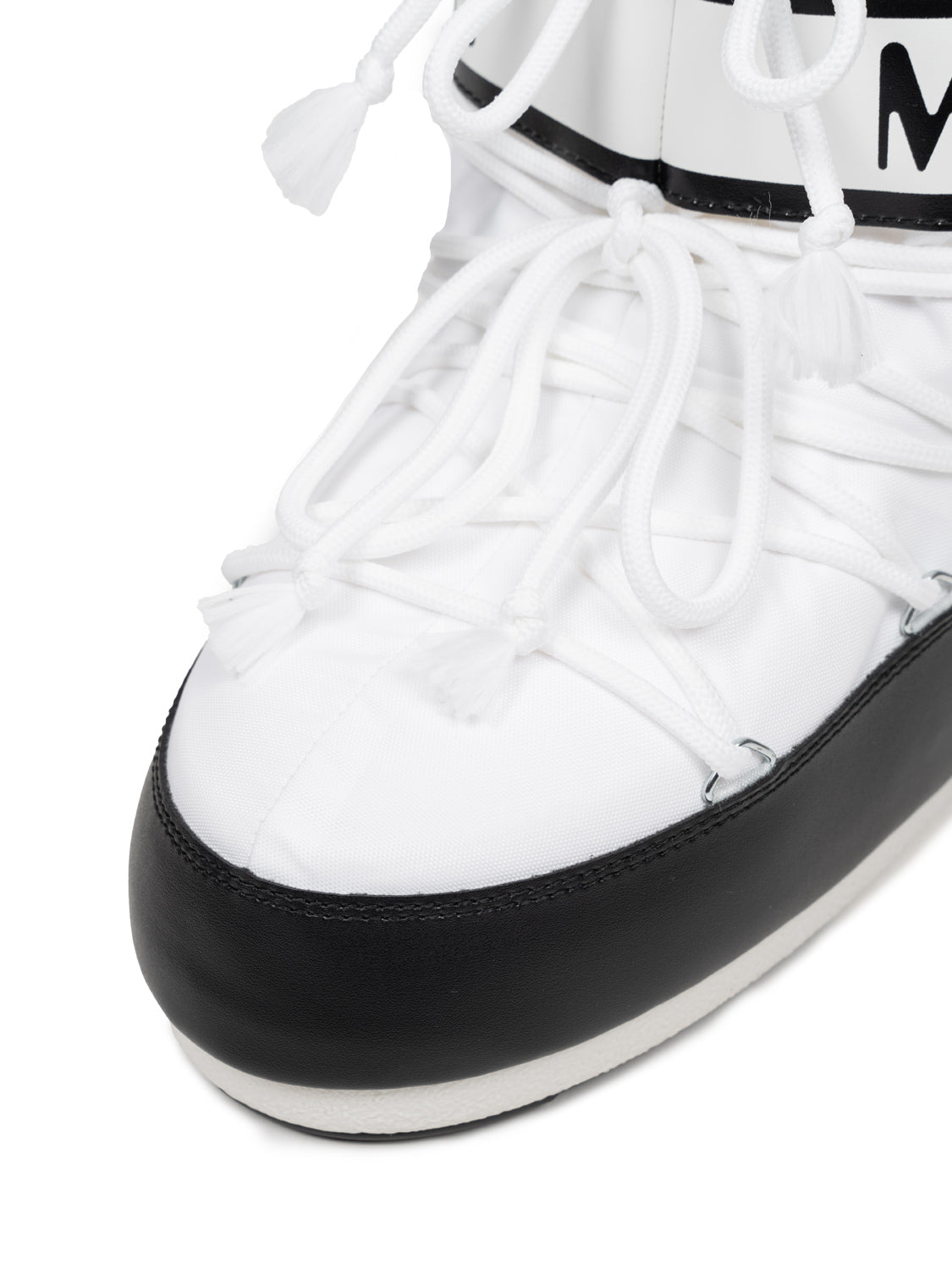 Die Nylon Boots in elegantem Weiß verbinden modernes Design mit funktionaler Performance und setzen dabei ein stilvolles Statement. Gefertigt aus 100 % wasserabweisendem Nylon, bieten sie zuverlässigen Schutz vor Nässe und bleiben gleichzeitig angenehm leicht. Die thermoplastische Gummilaufsohle sorgt für hervorragende Bodenhaftung, während PVC-Details an Ferse und Besatz dem Look eine strukturierte, hochwertige Note verleihen. Silberfarbene Metallösen, überkreuzte röhrenförmige Schnürsenkel und ein verstellbarer Kordelzug am Schaft unterstreichen den sportlich-futuristischen Charakter der Boots. Der markante Logopatch und die praktische Zuglasche an der Ferse ergänzen das funktionale Design perfekt. Dank ihres beidseitig tragbaren Aufbaus und des komfortablen Slip-on-Designs bieten die Boots maximale Vielseitigkeit – ideal für urbane Outfits und wechselhaftes Wetter.