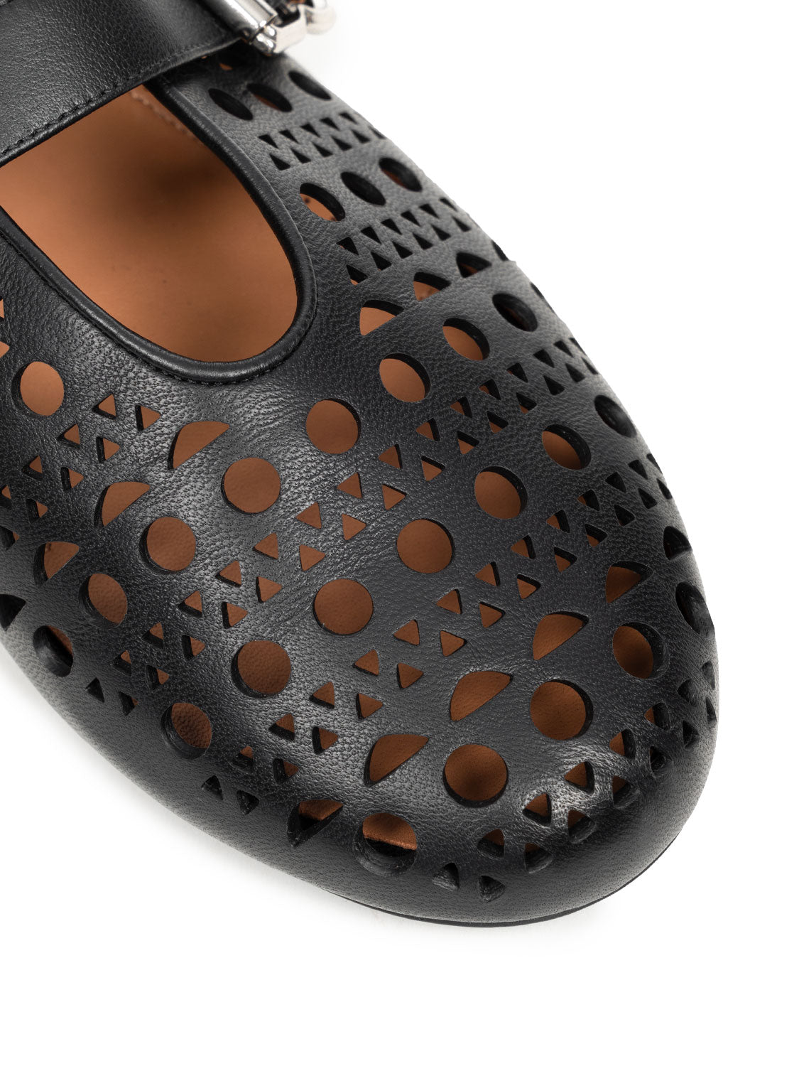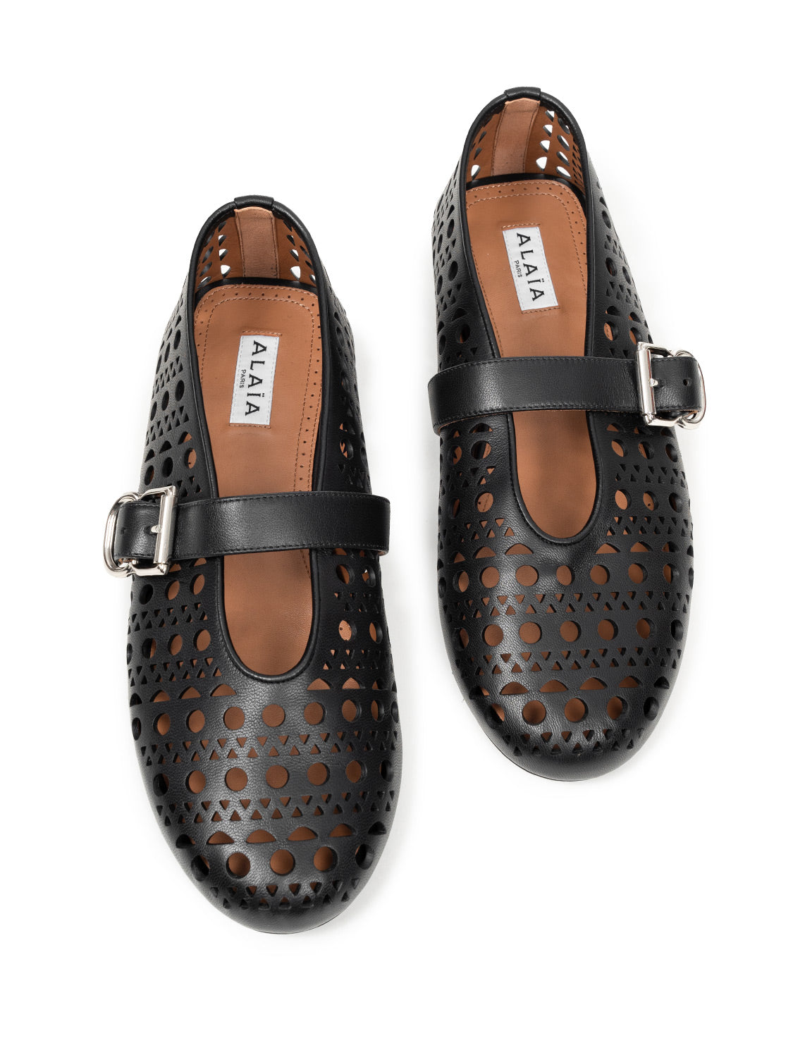 Diese flachen Ballerinas von Alaïa sind inspiriert von klassischen japanischen Schuhen und verbinden traditionelle Eleganz mit modernem Komfort. Gefertigt aus hochwertigen Materialien bieten sie dank ihrer flexiblen Gummisohle ein besonders angenehmes und sicheres Laufgefühl. Das minimalistische Design und die feinen Details machen die Ballerinas zum perfekten Begleiter für stilbewusste Frauen, die Wert auf zeitlose Ästhetik und Tragekomfort legen. Ob im Alltag oder zu besonderen Anlässen – diese Schuhe vereinen japanische Handwerkskunst mit der unverwechselbaren Eleganz von Alaïa.