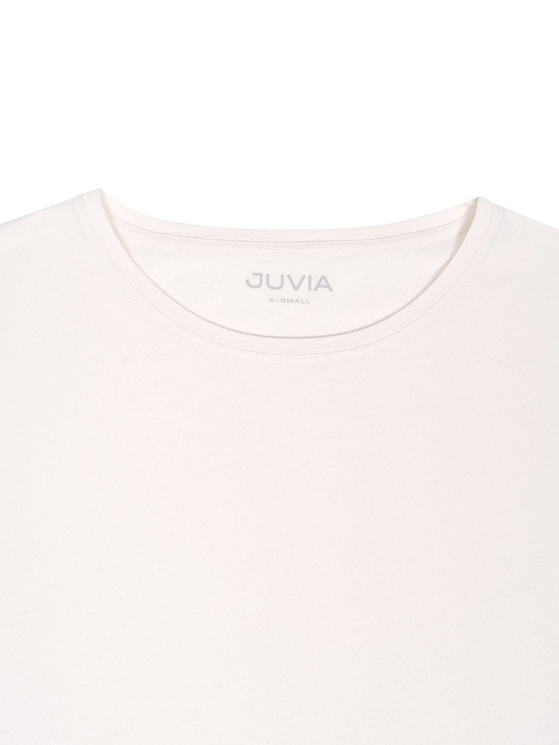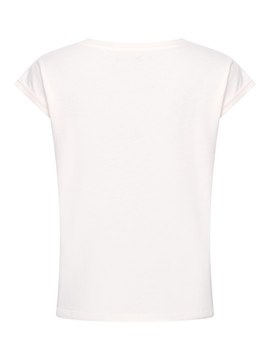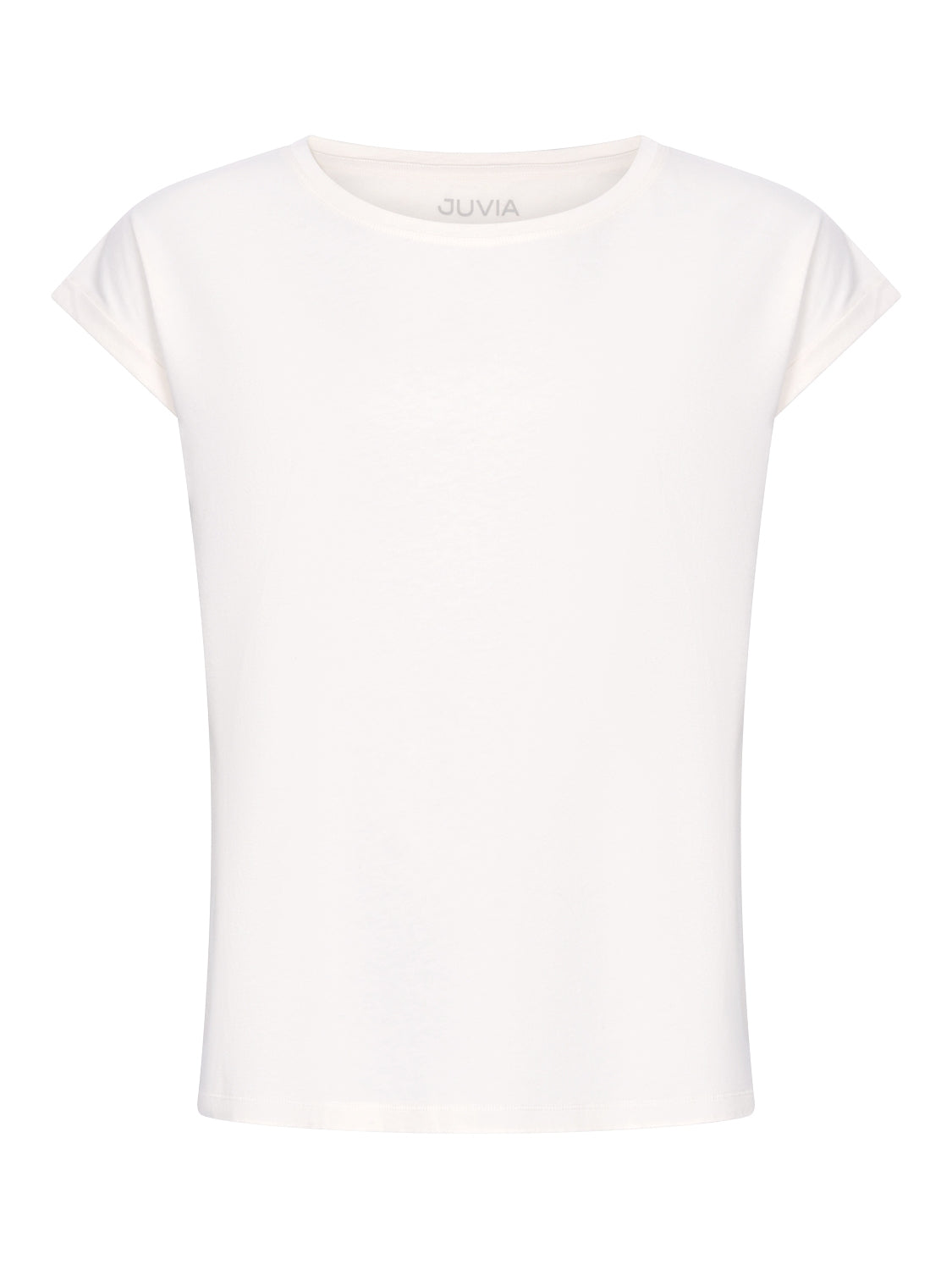 Das Boxy T-Shirt von Juvia in zartem Eggshell-Ton vereint Komfort und stilvolle Vielseitigkeit. Gefertigt aus reiner Baumwolle in angenehm dichter Struktur, überzeugt es durch ein besonders weiches Tragegefühl, das durch das Carbon Brushing noch verstärkt wird. Fixierte Ärmelumschläge und der klassische Rundhalsausschnitt sorgen für ein harmonisches, cleanes Finish. Dank seiner lockeren, modernen Passform lässt sich das T-Shirt mühelos in zahlreiche Looks integrieren und wird so zum vielseitigen Lieblingsstück für jeden Tag.