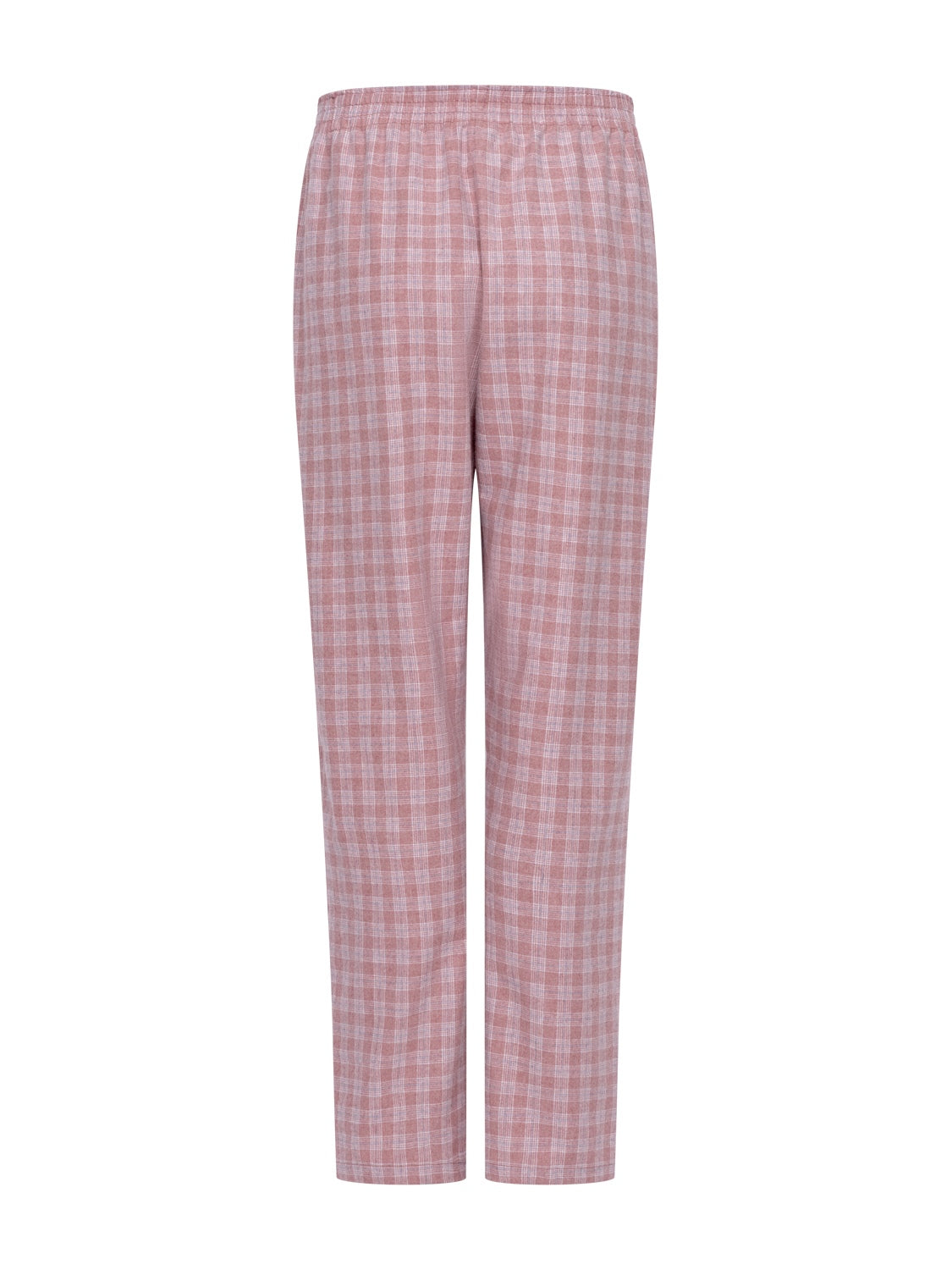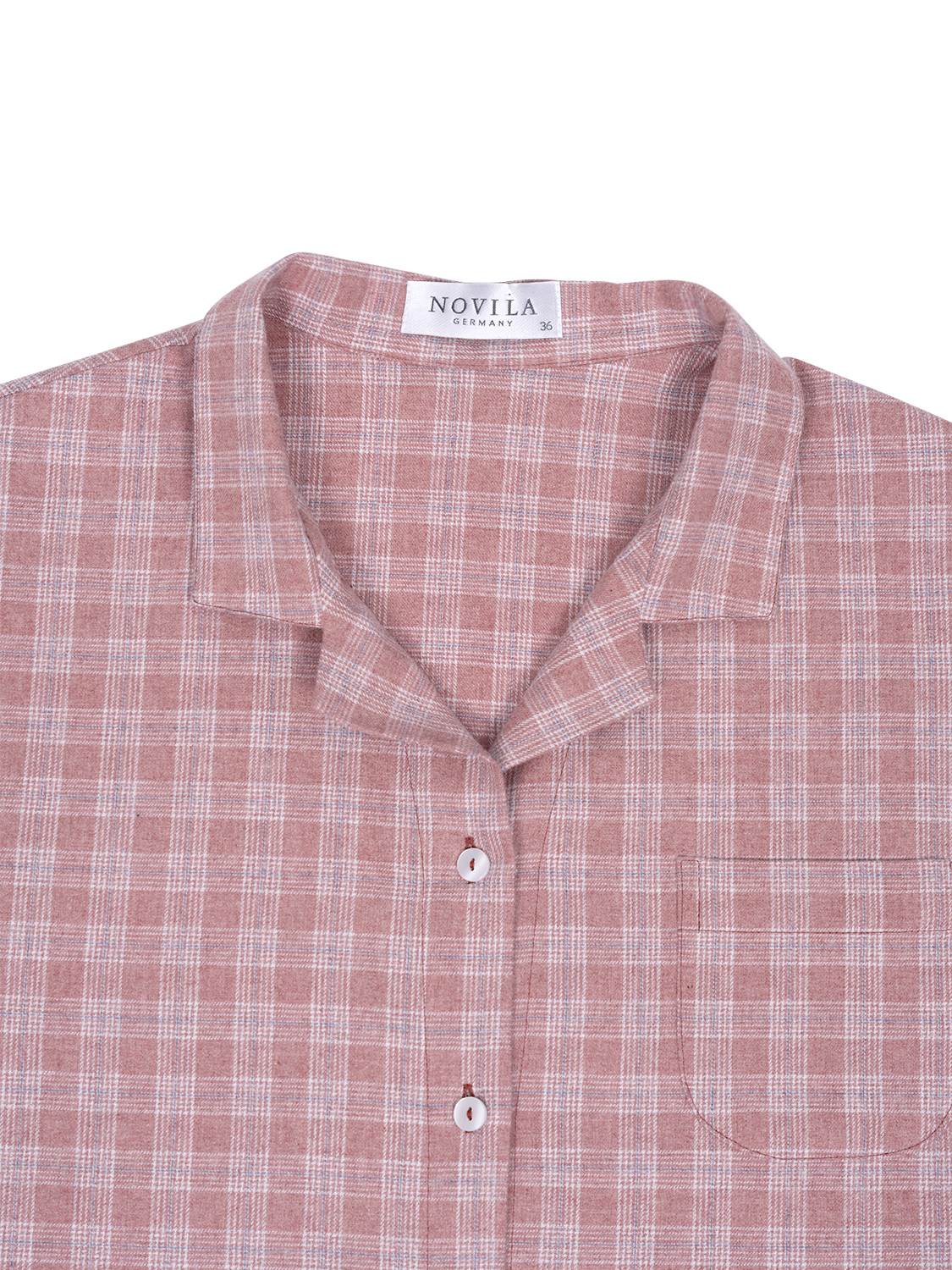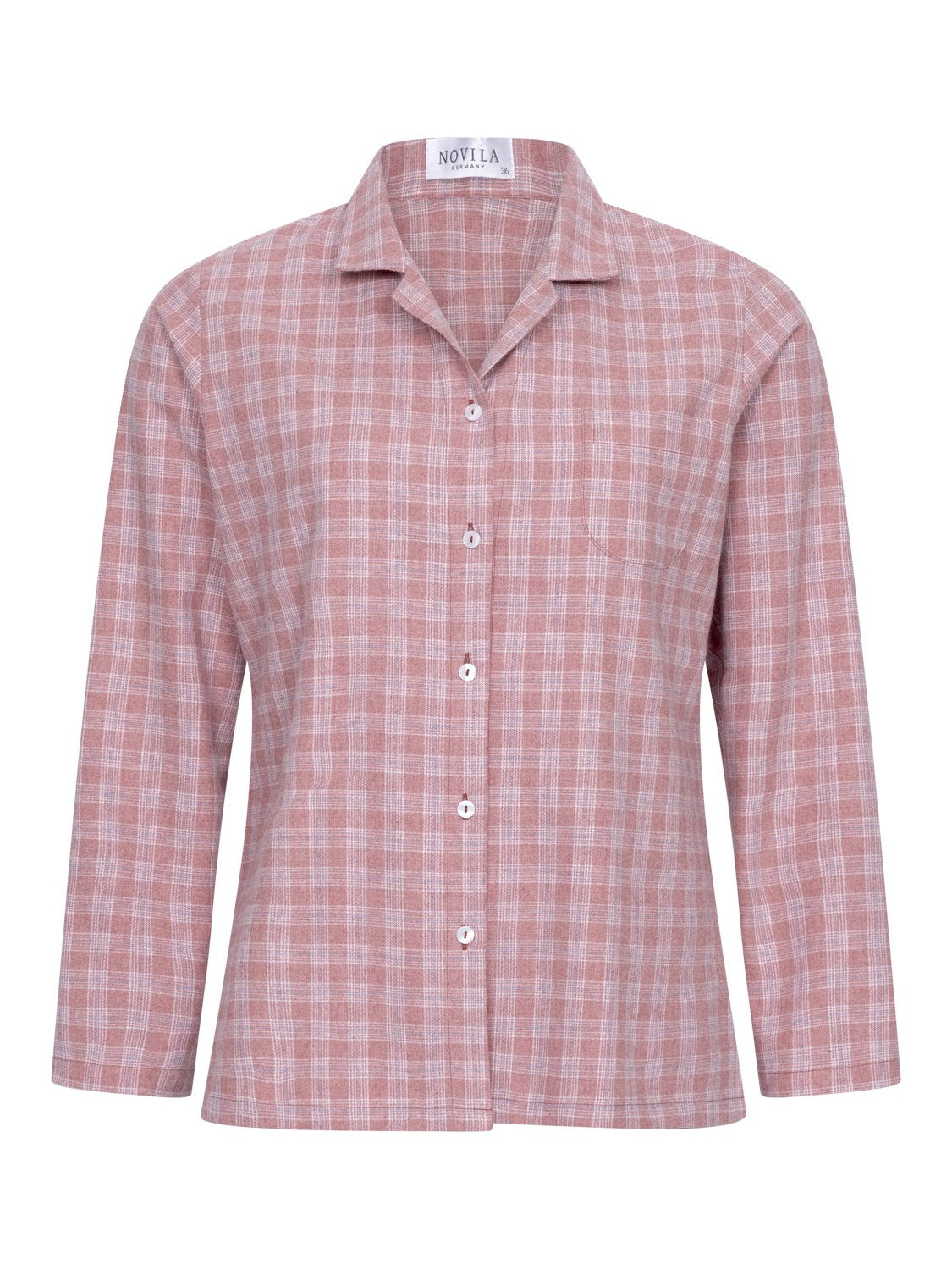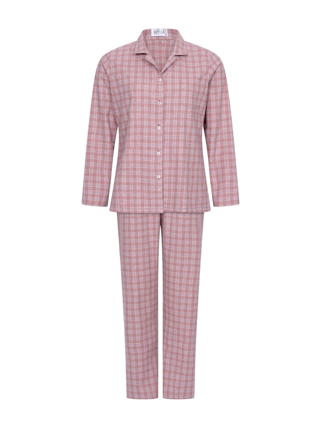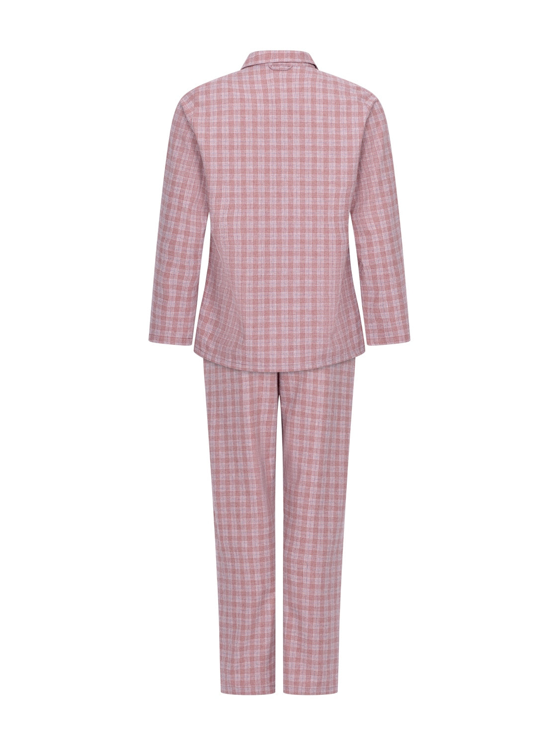 Dieser Pyjama aus hochwertigem Vollzwirn-Flanell überzeugt durch sein dezentes Karomuster in einer harmonischen Farbkombination und eine beidseitig angeraute Oberfläche, die für besonders weiche Wärme sorgt. Die Jacke ist mit einem klassischen Reverskragen, praktischen Seitenschlitzen und einer Brusttasche ausgestattet, die dem Design eine elegante Note verleihen. Die locker geschnittene Hose verfügt über einen elastischen Novila-Bund sowie ein dekoratives Bindeband und garantiert so einen bequemen Sitz und optimale Bewegungsfreiheit. Ein komfortabler und stilvoller Pyjama, der sich ideal für entspannte Abende eignet.