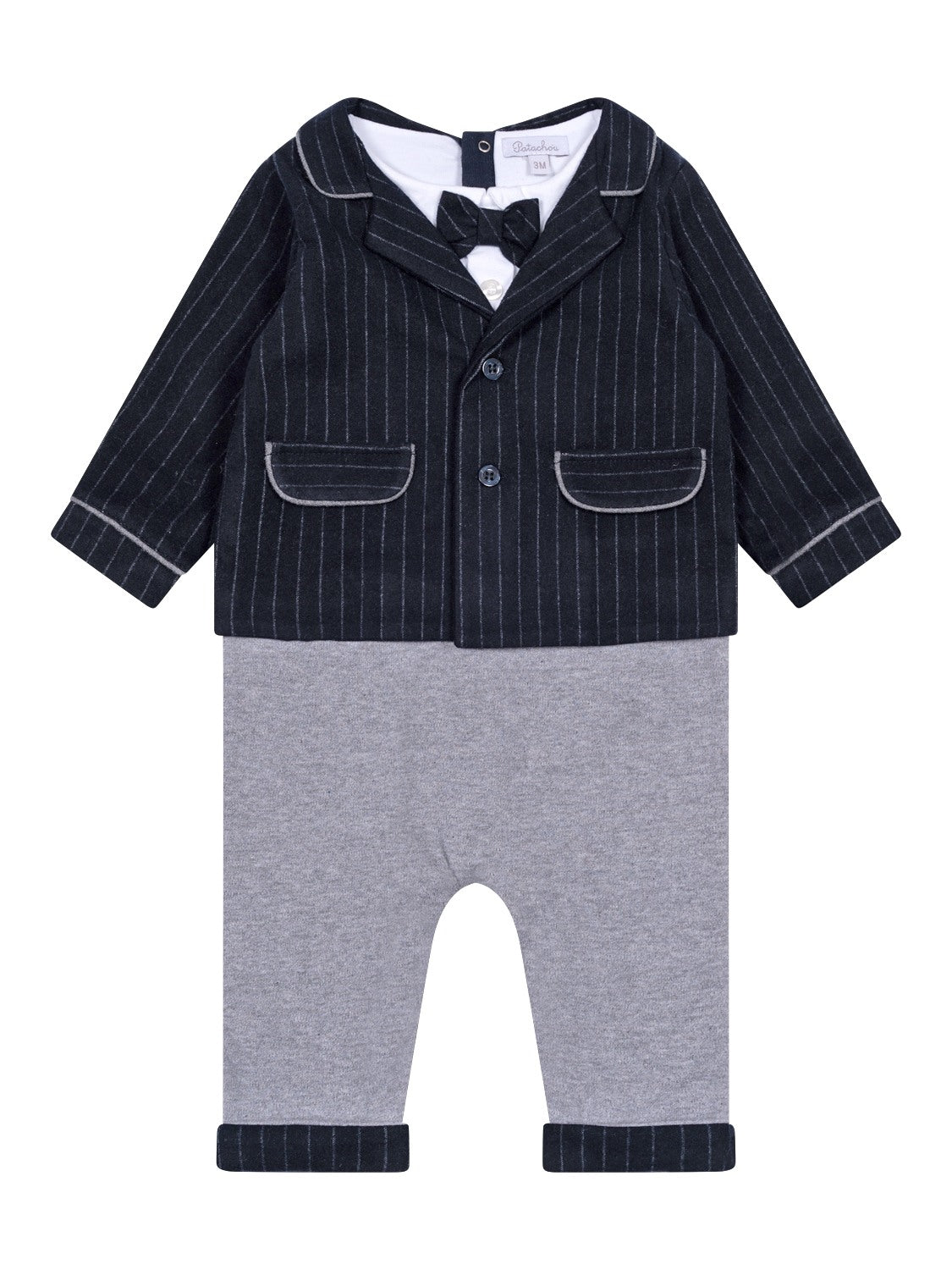 Festlicher Strampler im Layering-Look mit Nadelstreifen - Navy/Grau
