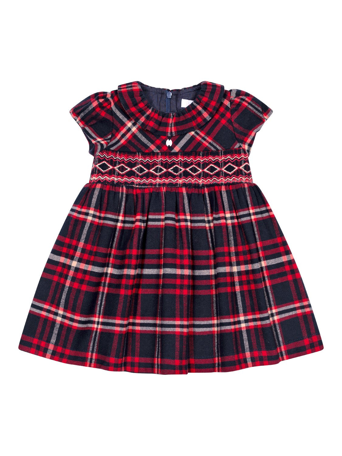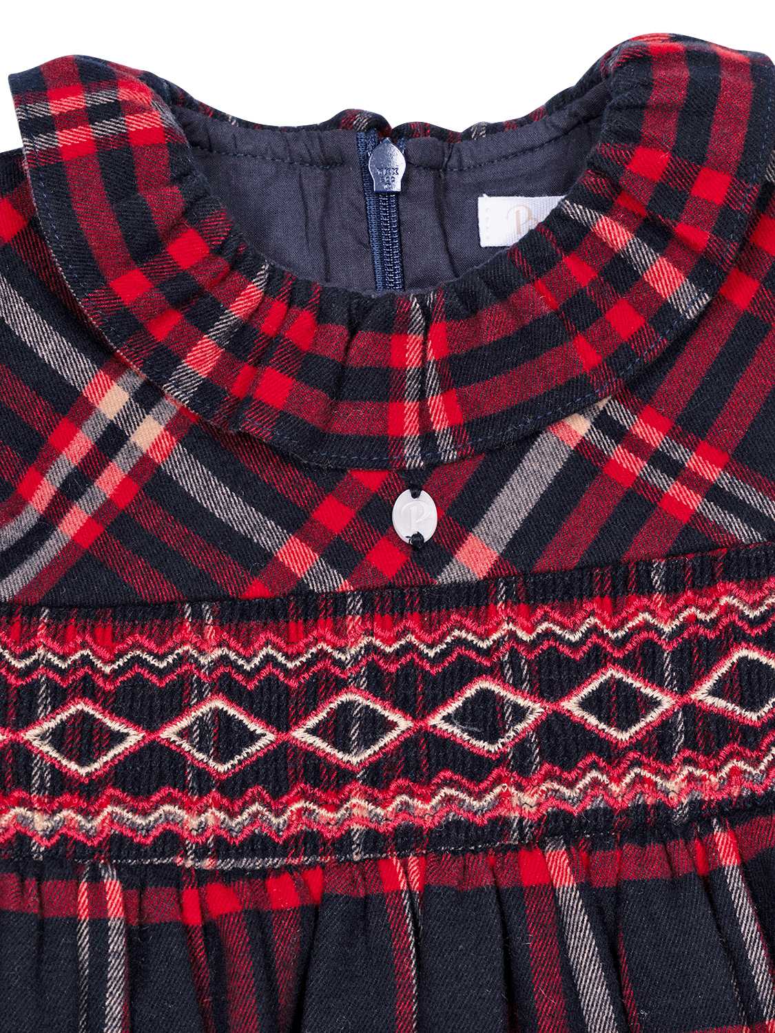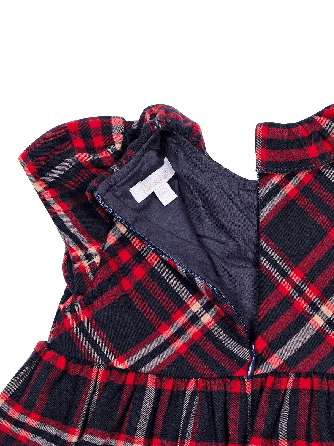 Dieses bezaubernde Kleid von Patachou besticht mit einer Fertigung aus hochwertigem Schottenkaro-Stoff, welcher als klassisches Muster mit modernem Touch erscheint. Zarte Stickereien zieren die Taille und verleihen einen Hauch von Eleganz, während verspielte Flügelärmel das Gesamtbild harmonisch vollenden. Der charakteristische Patachou-Perlmuttknopf ziert die Brustmitte und setzt labeltypische Akzente. Auf der Rückseite befindet sich ein verdeckter Reißverschluss. Für zusätzlichen Tragekomfort ist das Modell mit einem Futter aus reiner Baumwolle ausgestattet.