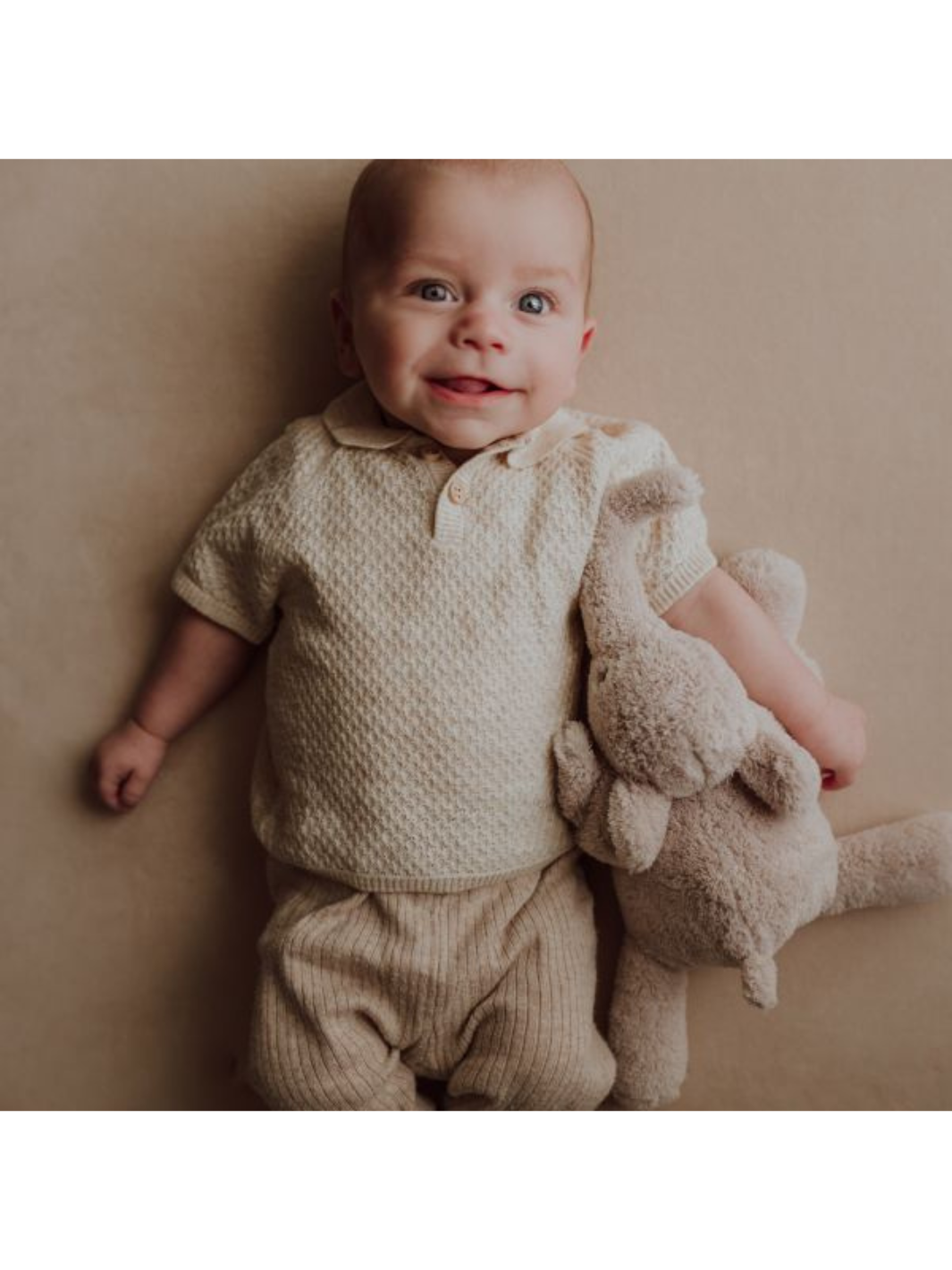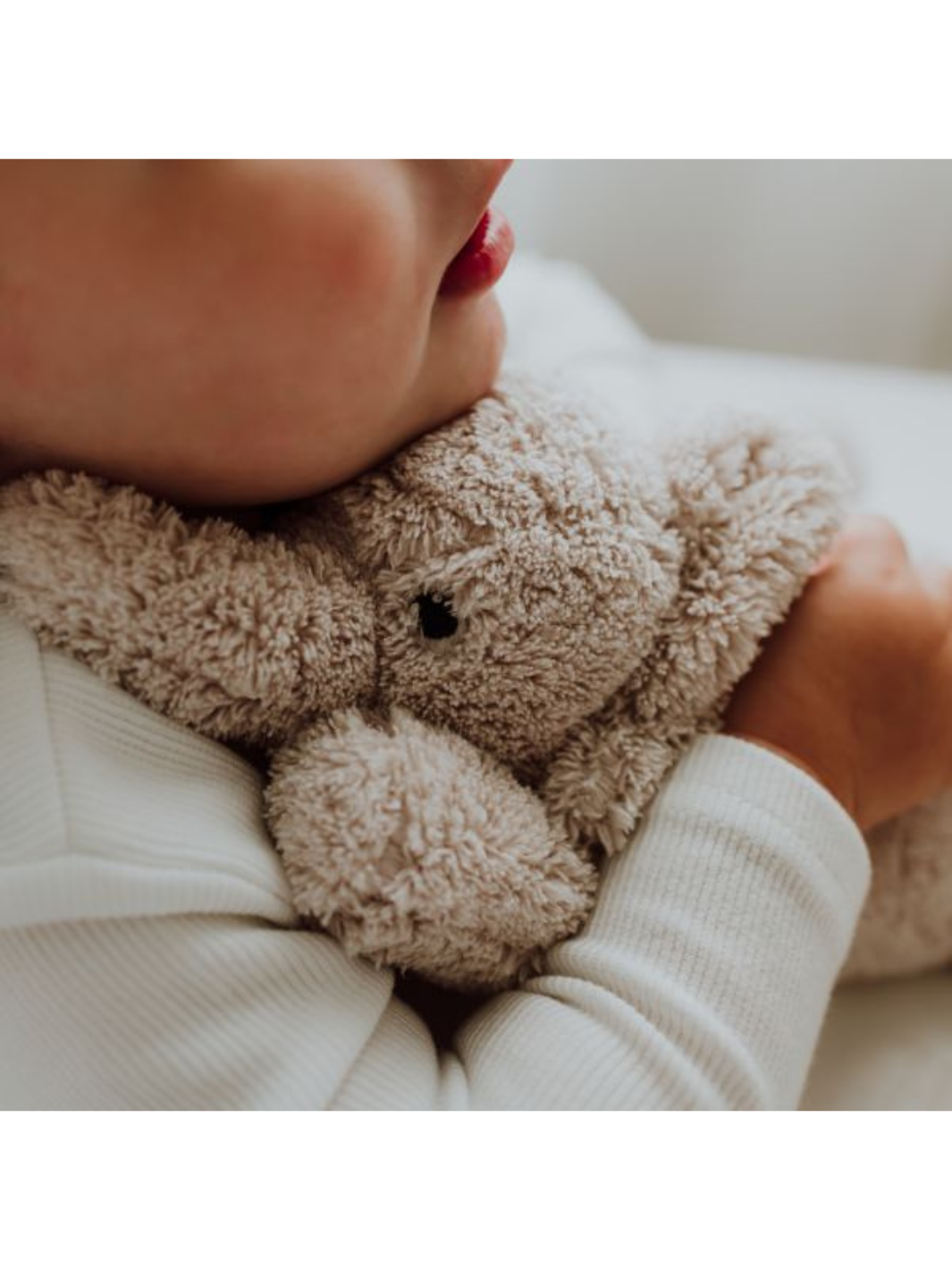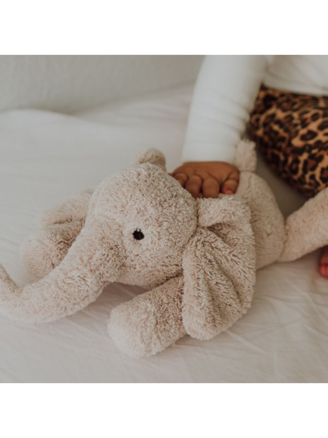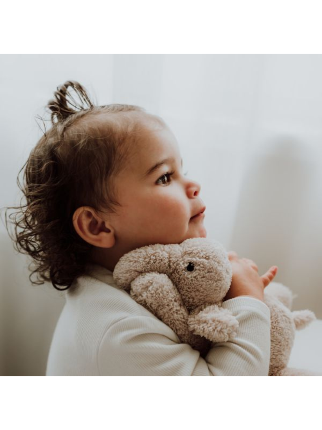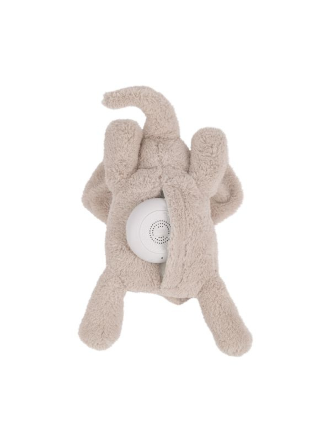 Das George Herzschlagkuscheltier in Beige von Flow Amsterdam ist ein wundervoller Einschlafbegleiter, denn die Spieluhr im Inneren des Stoffelefanten spielt beruhigende Klänge und Melodien. Zudem verfügt die Spieluhr über einen Herzschlagton, einen Regenton sowie zwei beruhigende Melodien. Dank der einfachen Bedienung kann mühelos zwischen den verschiedenen Klängen gewechselt und mit dem eingebauten Timer die Zeit eingestellt werden, nach der sich der Plüschelefant automatisch ausschaltet (15, 30 oder 60 Minuten). Der Geräuschsensor ist einzigartig bei George: Wenn Ihr Kind anfängt zu weinen, schaltet sich der Ton automatisch wieder ein, um Ihr Kind sanft zu beruhigen und es weiterschlafen zu lassen. Zum Waschen des Elefanten kann über einen Reißverschluss die Spieluhr ganz einfach abgenommen werden. George besteht aus hochwertigem, besonders weichem Polyester - einfach perfekt zum Kuscheln und Liebhaben.