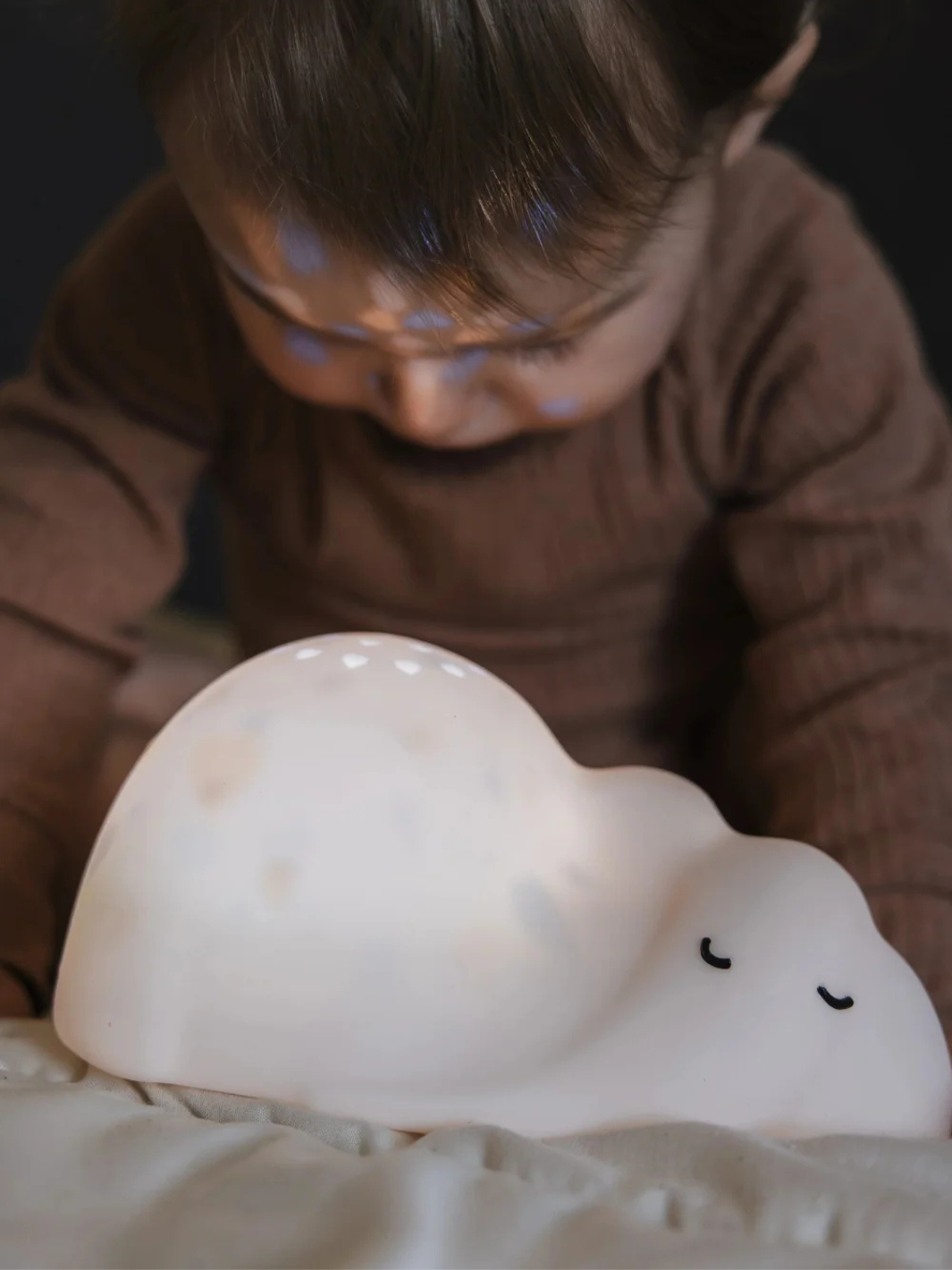 Sechs verschiedene Lichtoptionen (Weiß, Blau, Gelb, Multicolor, sanfte Farbübergänge oder Fade-Funktion) sorgen für Abwechslung und lassen sich mit drei Helligkeitsstufen flexibel anpassen – ob beim Spielen, Vorlesen oder Schlafen. Praktisch: Mit dem integrierten Timer schaltet sich das Licht nach 30 Minuten automatisch aus, damit dein Kind ungestört einschlafen kann.