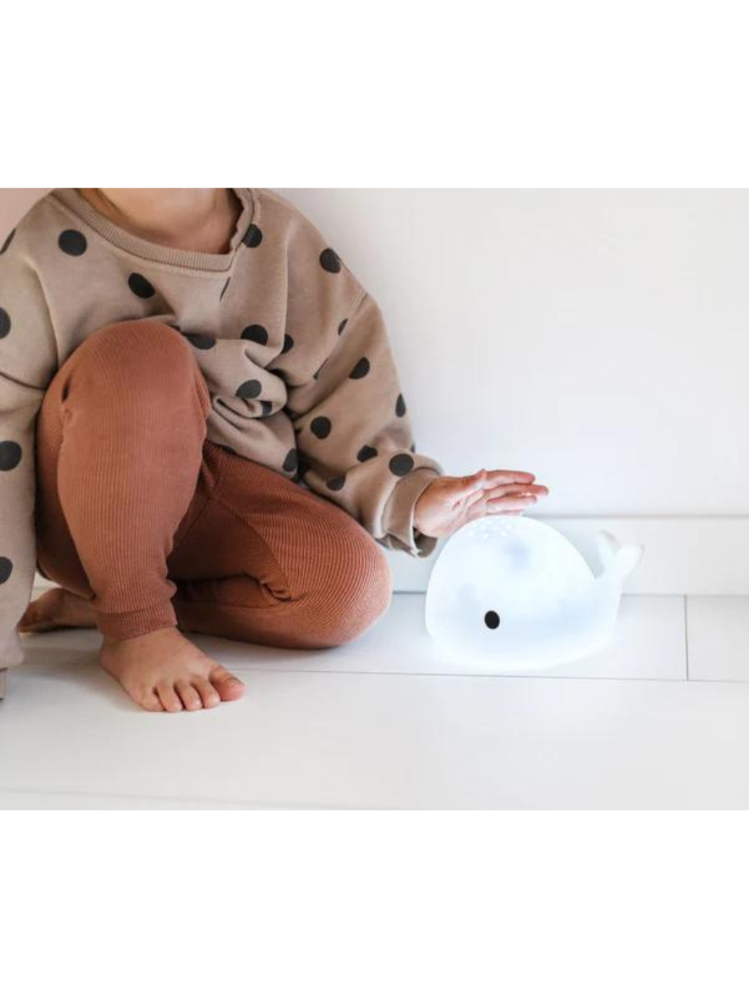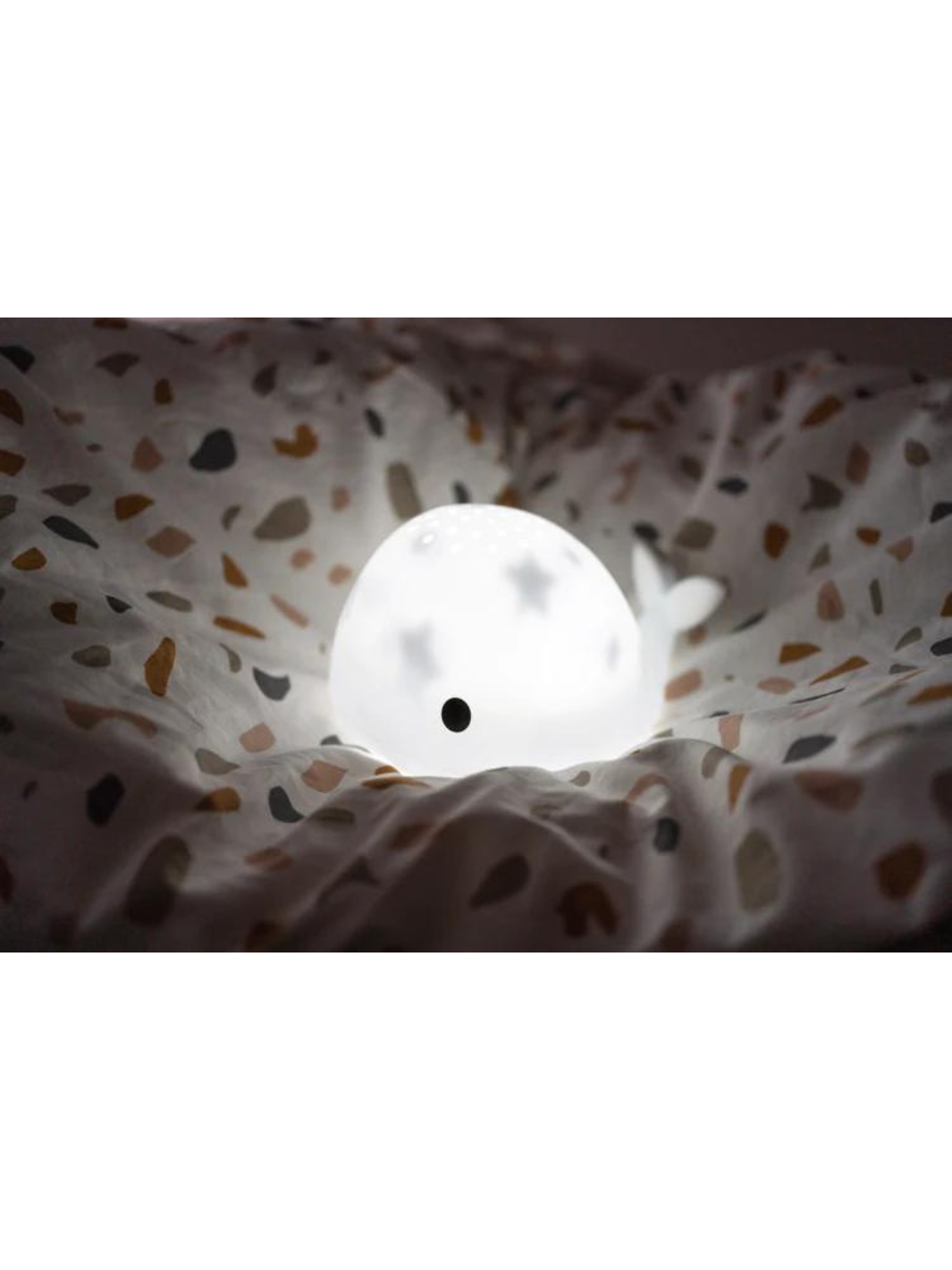 Der Walfisch-Projektor Moby von Flow Amsterdam verwandelt das Kinderzimmer in eine magische Welt. Im Schein des sanften Lichts kann Ihr Kleines friedlich einschlafen. Die niedlichen Projektionen an der Decke wirken beruhigend, während das liebevoll gestaltete Wal-Design Kinderherzen im Sturm erobert. Zudem ist der Projektor auch ein Nachtlicht mit Allover-Sternen. Es verfügt über 6 verschiedene Lichtoptionen: Weiß, Blau, Gelb, mehrfarbig, Überblendung zwischen Farben und Überblendung aller Farben.