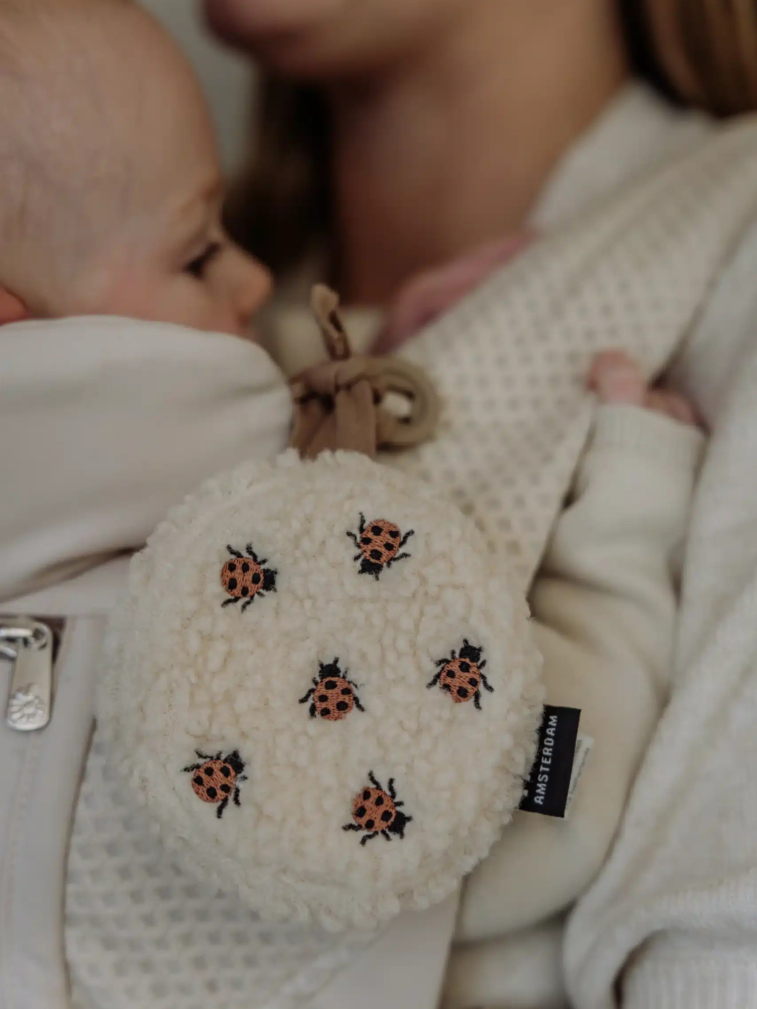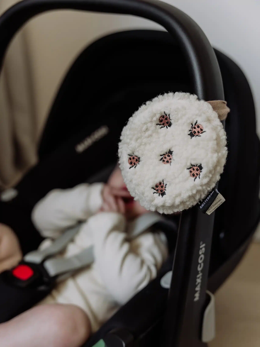 Das kleine Schmusekissen mit Spieluhr und süßem Marienkäfer-Stickmotiv von Flow Amsterdam eignet sich mit seinem handlichen Format perfekt für unterwegs. Mit seiner eingebauten Spieluhr soll das flauschige Kissen dafür sorgen, Ihrem Kind unterwegs ein Gefühl von Sicherheit und Ruhe zu vermitteln. Dank seiner praktischen Größe lässt es sich leicht im Maxi-Cosi, Kinderwagen oder Auto mitnehmen und mit der Kordel überall leicht befestigen.