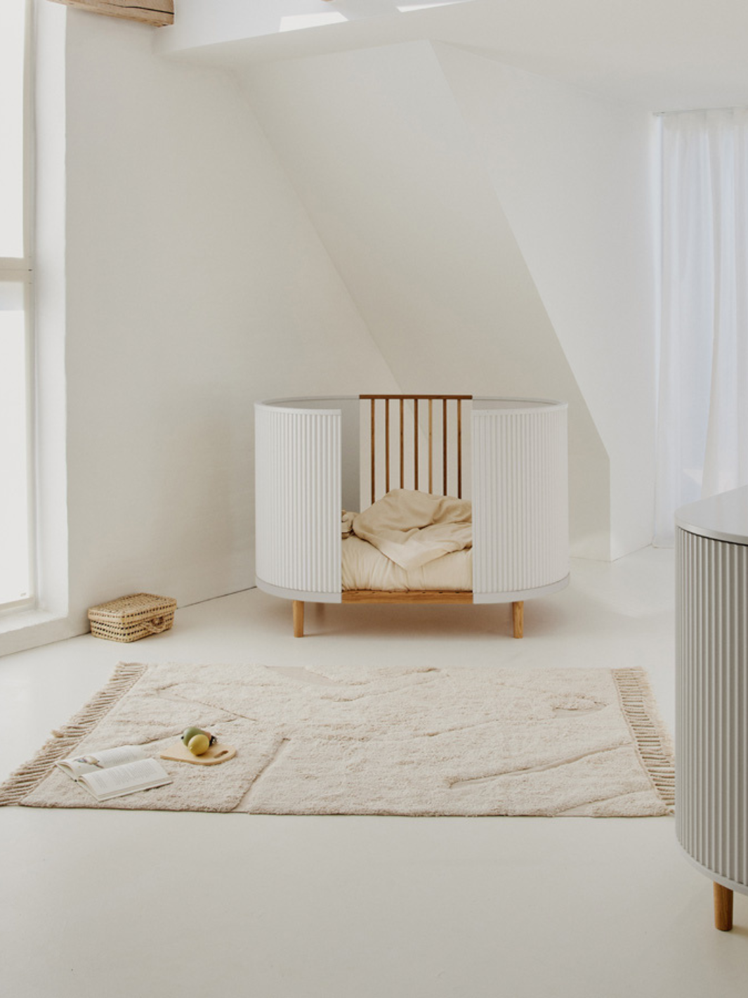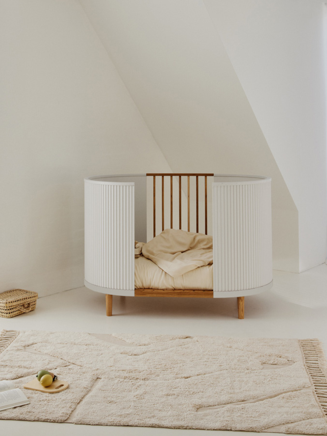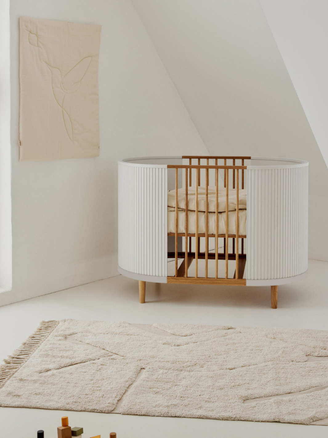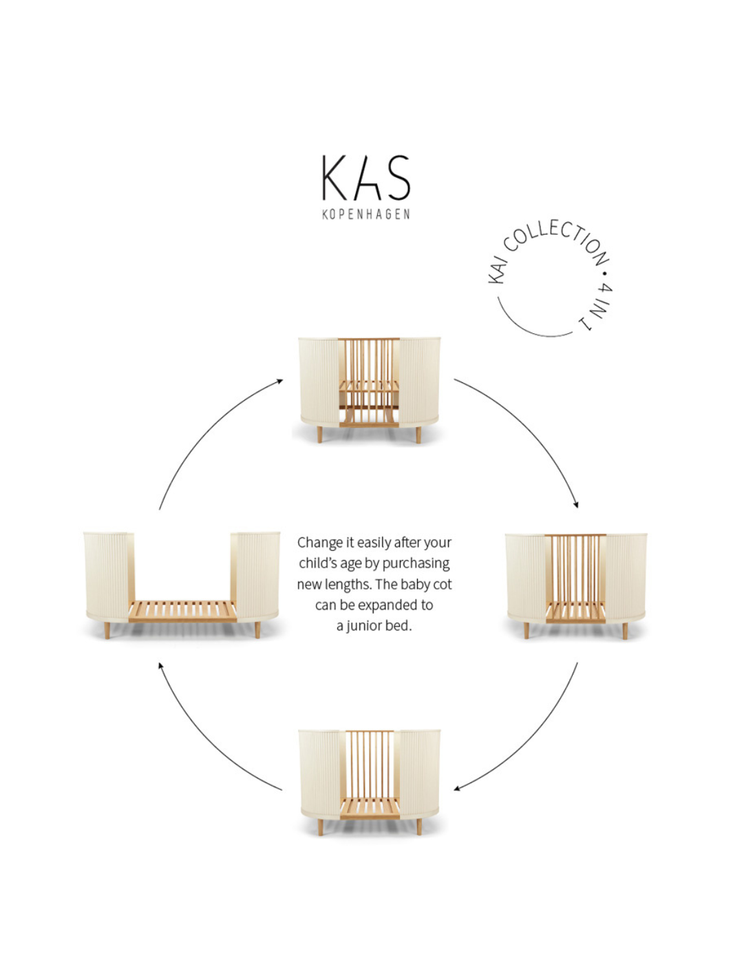 Das Kai Babybett von Kas Kopenhagen ist ein einzigartiges Kinderbett mit einem klassischen, zeitlosen Design, einer eleganten, ovalen Form und durchdachter Funktionalität. Ein Modell, das über Generationen hinweg genutzt werden kann und viele Jahre Freude bereitet.