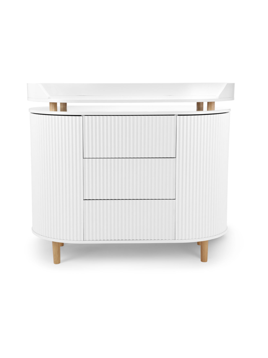 Darüber hinaus ist der Wickelaufsatz mit eleganten Eichenfüßen ausgestattet.