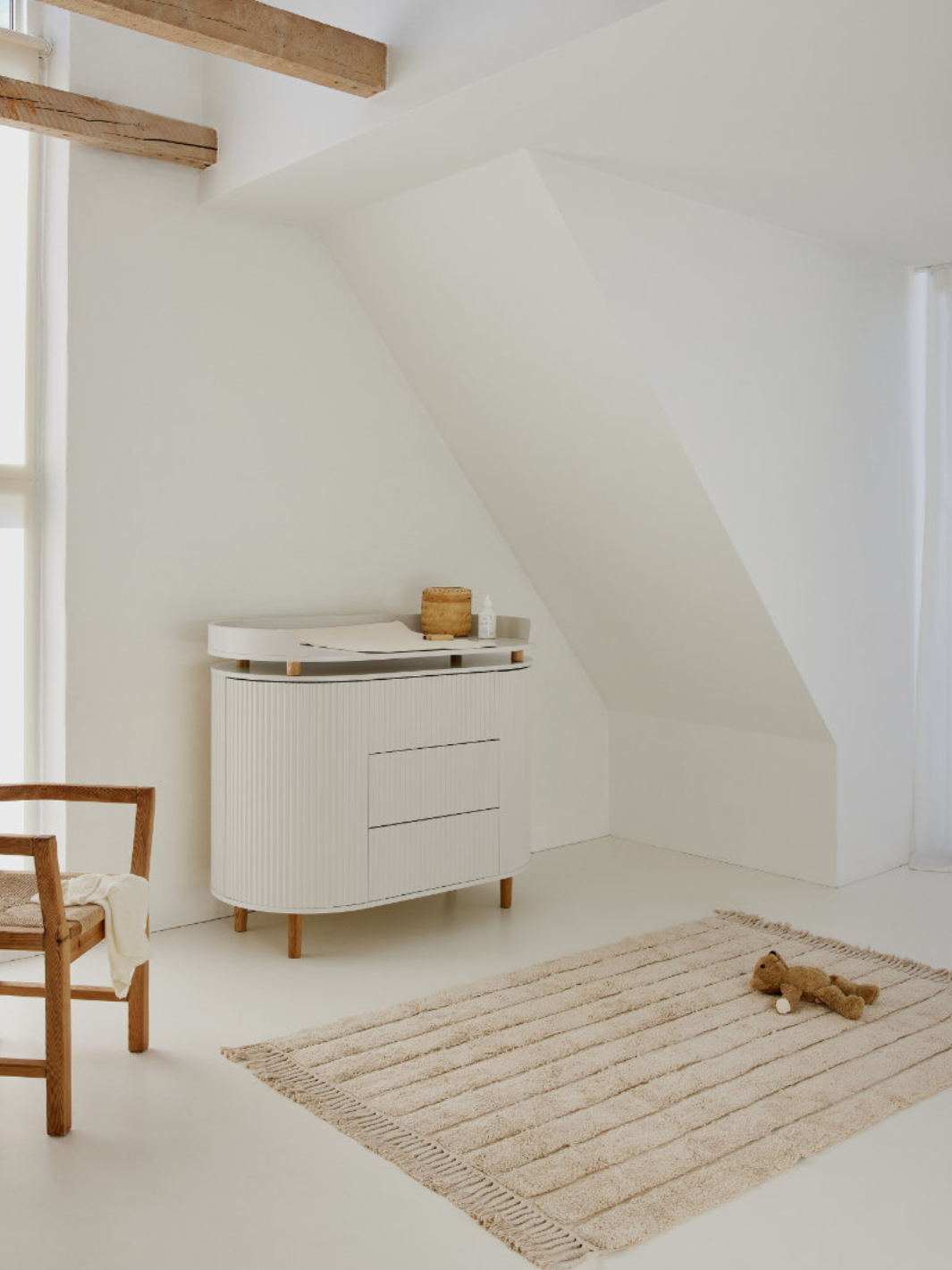Der Kai Wickelaufsatz von Kas Kopenhagen lässt sich problemlos auf der Kai Kommode montieren, ohne dass Löcher auf der Oberfläche der Kommode sichtbar sind, wodurch eine schöne und nahtlose Ästhetik entsteht.