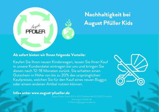 Ihr Kind ist dem Kinderwagen oder Buggy entwachsen? Bringen Sie diesen zurück zu uns und erhalten Sie einen Gutschein für Ihren nächsten Einkauf.