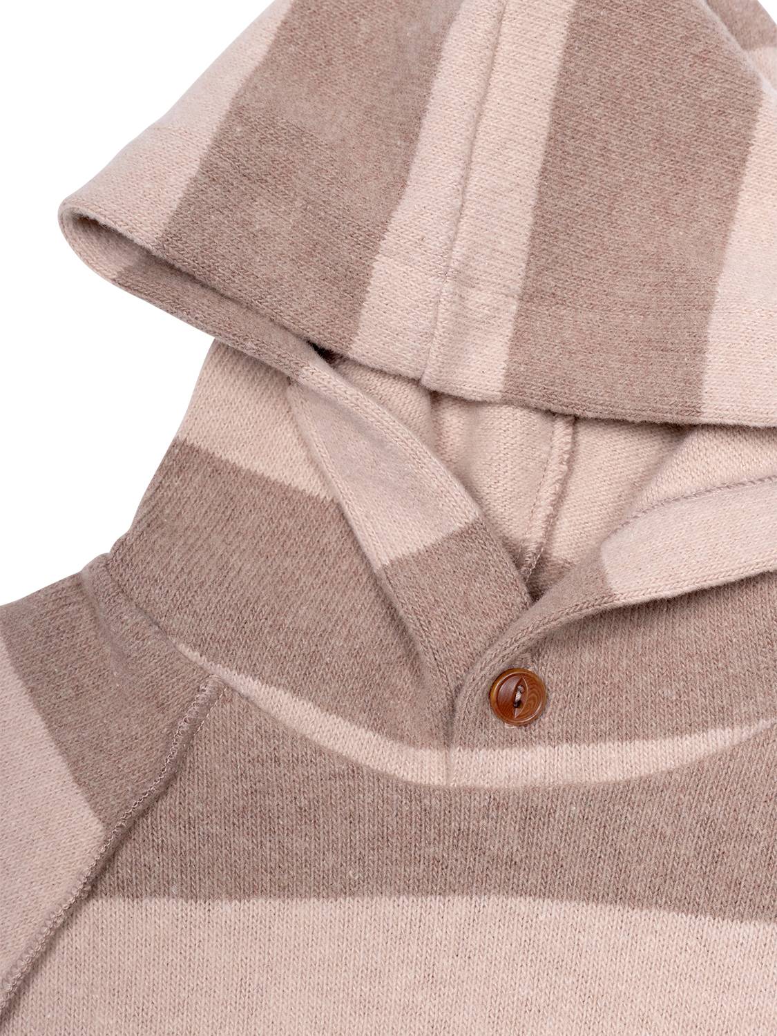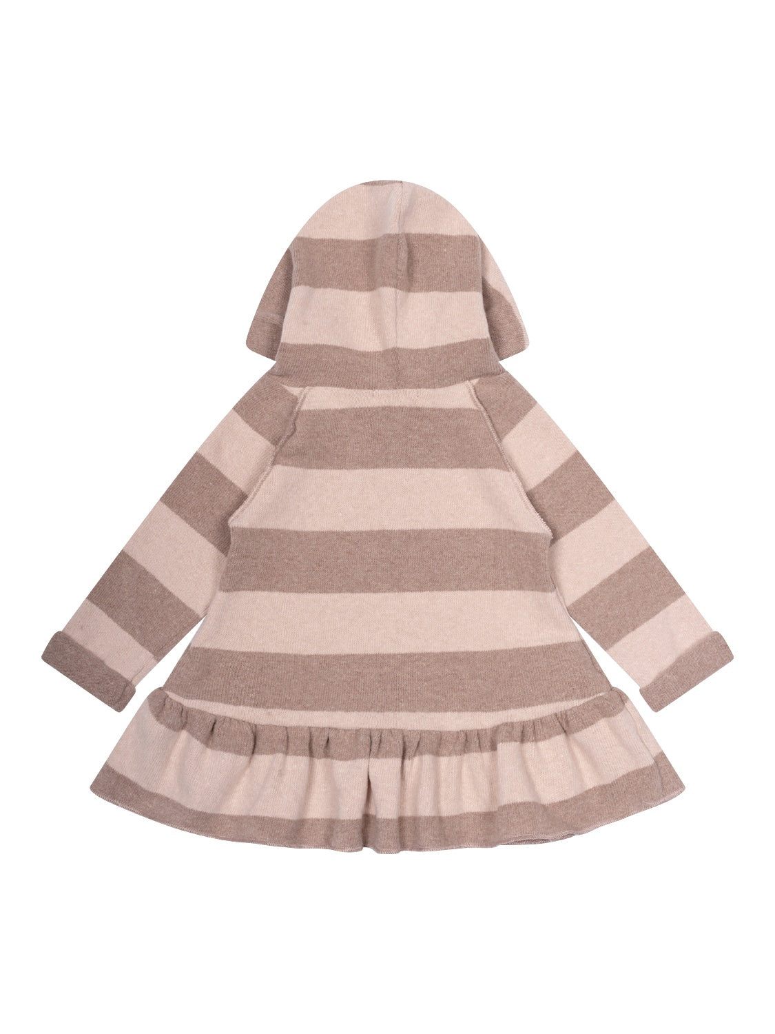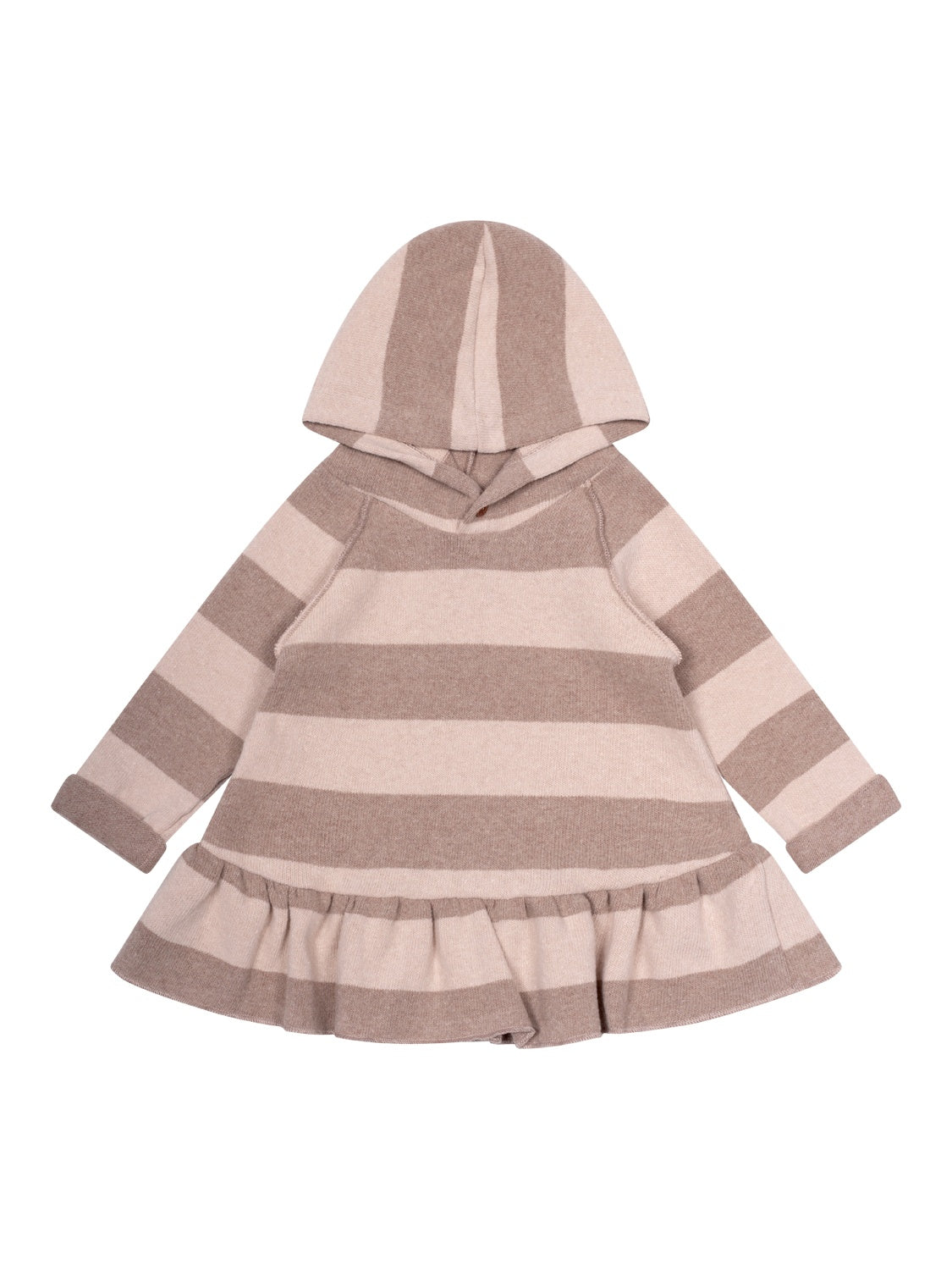 Das süße Kleid Hilda in Nude von 1+ in the Family vereint Komfort und Stil auf perfekte Weise. Hergestellt aus einer hochwertigen Baumwollmischung, bietet das Modell ein kuschelweiches Tragegefühl. Mit seinem gestreiften Design liegt das Kleidchen voll im Trend und kreiert ein vielseitiges Basic-Kleidungsstück, das in keiner Mädchen-Garderobe fehlen sollte. Ein breiter Rüschensaum verleiht dem Look eine verspielte Note, während die flauschige Kapuze mit dekorativem Knopf-Detail zusätzlichen Schutz bietet.