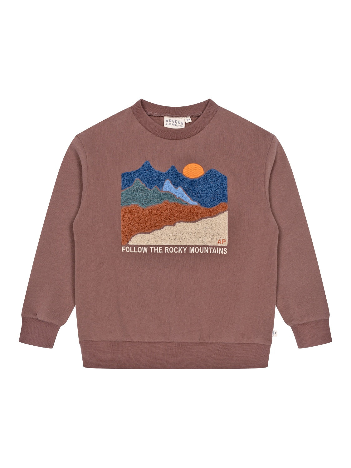 Dieses bezaubernde Sweatshirt in Braun von Arsène & les Pipelettes wird aus hochwertiger Bio-Baumwolle gefertigt und verspricht dank der weichen Fleeceinnenseite einen kuschligen Tragekomfort. Auf der Vorderseite präsentiert das Modell eine raffinierte 'Follow the Rocky Mountains'-Frotteestickerei, die den Look zum einzigartigen Hingucker macht. Zudem ist der Pullover mit einem gerippten Rundhalsausschnitt, langen Ärmeln, gerippten Abschlüssen sowie einer lässigen Passform versehen. Ein kleines Flaggenetikett an der Seitennaht rundet das Gesamtbild harmonisch ab.