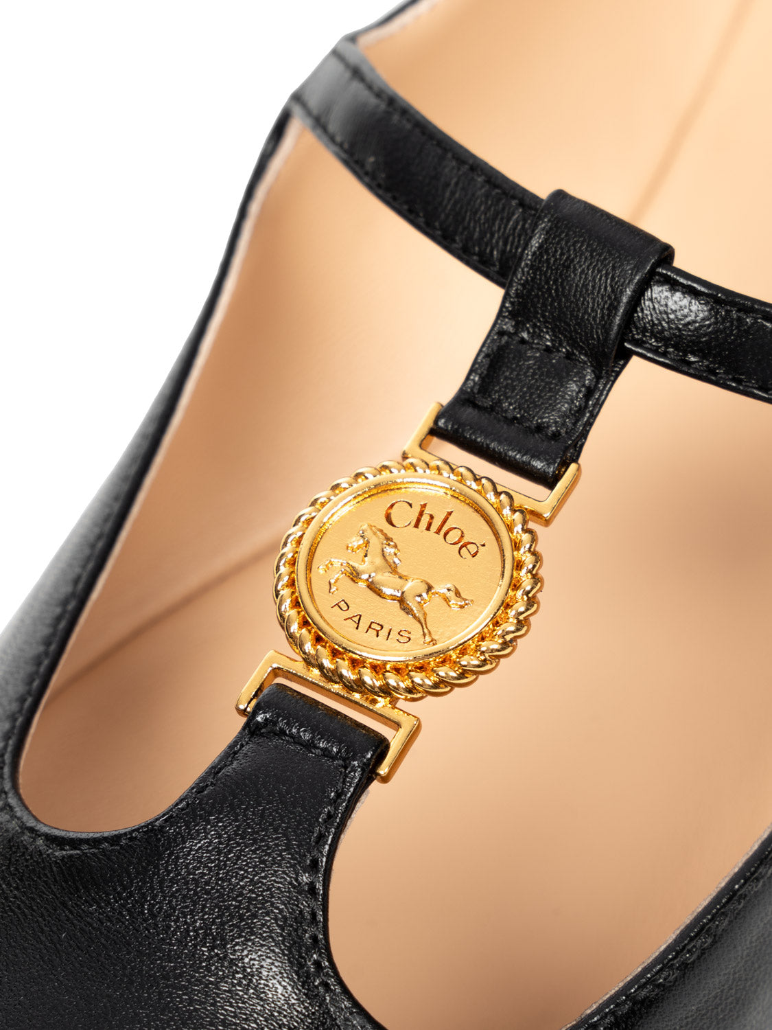 Die Leonore Ballerinas bestechen durch ihr glänzendes Lammleder und die klassische Mary-Jane-Form, die Eleganz und Komfort perfekt vereint. Die sanft abgerundete Zehenpartie sorgt für eine schmeichelhafte Silhouette, während die leichte und flexible Gummisohle für angenehmen Tragekomfort und sicheren Halt im Alltag sorgt. Das charakteristische goldfarbene Horse Medal-Emblem der Maison setzt einen edlen Akzent und rundet das Design dieser flachen Ballerinas stilvoll ab – ein zeitloses Modell, das sich mühelos zu verschiedenen Looks kombinieren lässt.
