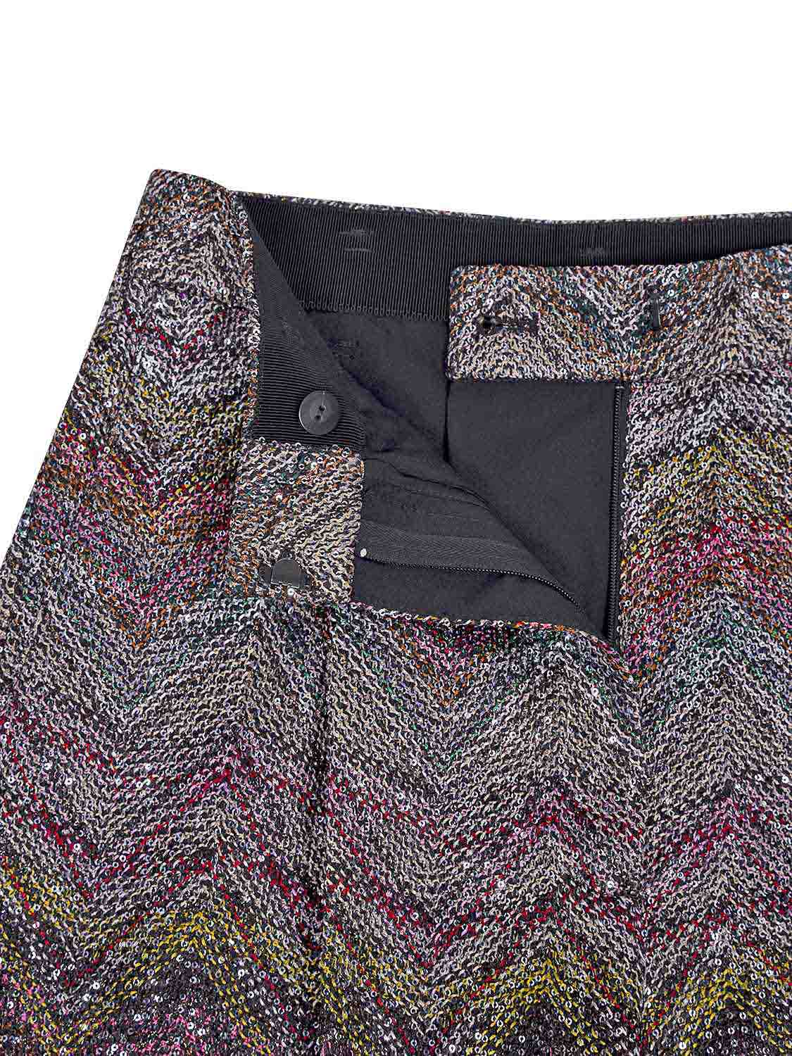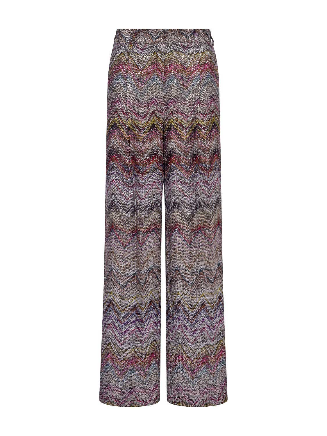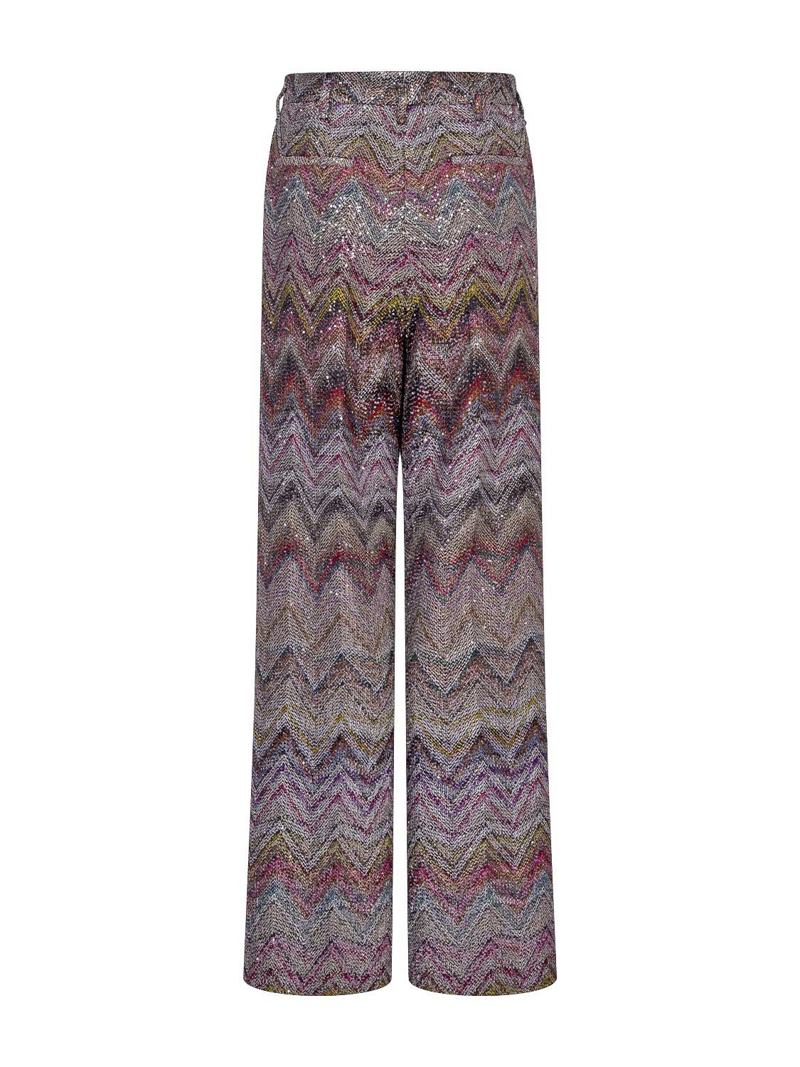 Die Damenhose von Missoni besticht durch ihren funkelnden, eleganten Charakter und verkörpert die unverkennbare Raffinesse der Marke. Sie ist gerade geschnitten und aus Viskose-Lamé gefertigt, das mit glitzernden Pailletten veredelt wurde. Auf den traditionellen Caperdoni-Webstühlen gewebt, zeigt die Hose das ikonische Zickzack-Muster von Missoni, das Struktur und Tiefe verleiht. Das schimmernde Material sorgt für einen luxuriösen, ausdrucksstarken Look und macht das Modell ideal für festliche Anlässe oder stilvolle Abendoutfits.