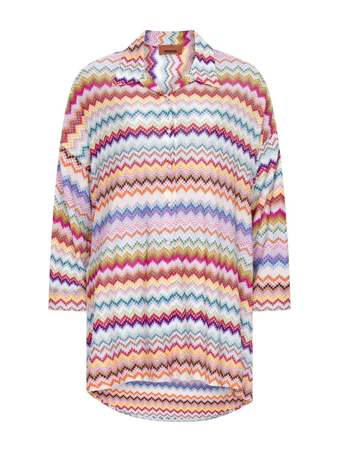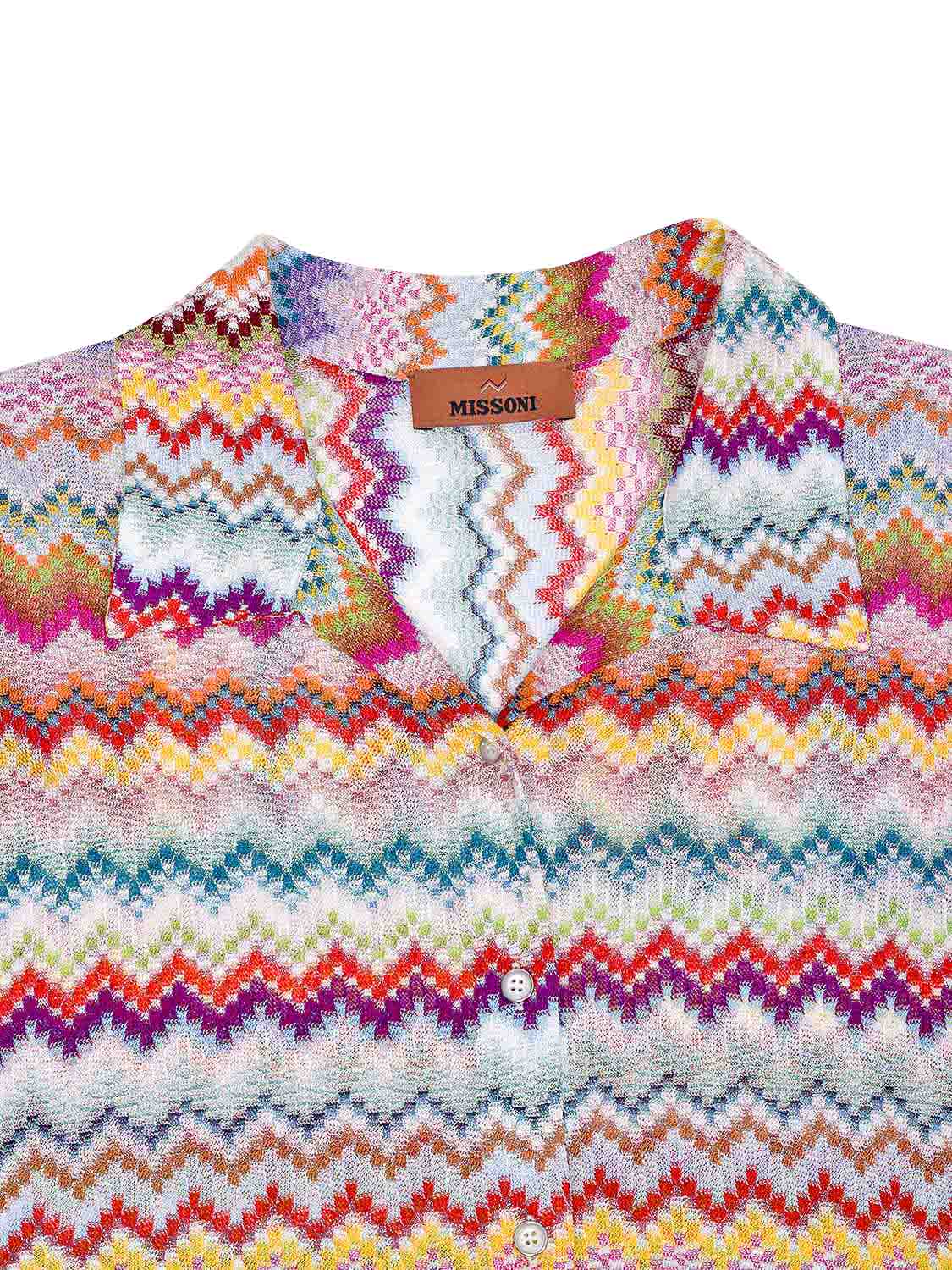Die Hemdbluse von Missoni besticht durch ihre lebendige Farbgebung und das charakteristische Zickzack-Muster, für das das italienische Modehaus weltbekannt ist. Durch die glitzernden Akzente erhält das Design einen eleganten, aber gleichzeitig modernen Touch. Die lockere Passform und die überschnittenen Schultern verleihen der Bluse einen lässigen, sommerlichen Charme, der sich perfekt für entspannte Tage oder besondere Anlässe eignet. Ein stilvolles und zugleich komfortables Kleidungsstück, das die unverwechselbare Handschrift von Missoni trägt.