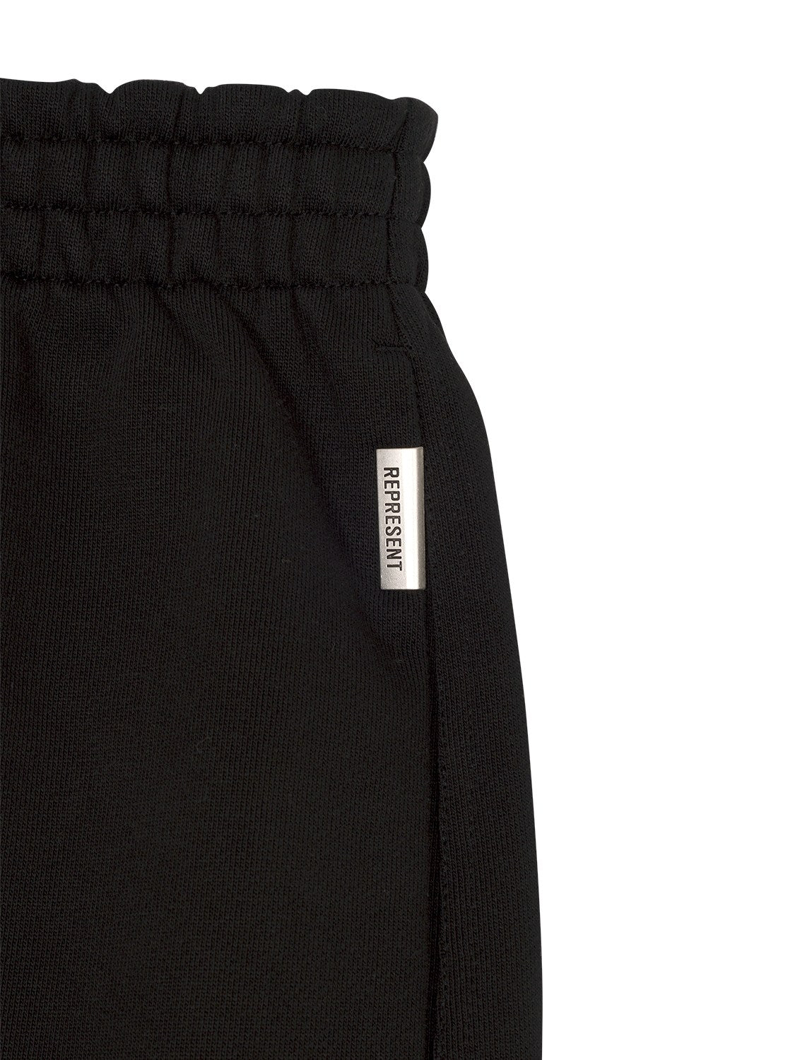 Die Initial Sweatshorts in Schwarz bestechen durch ihre lockere, kastige Silhouette und bestehen aus schwerer, hochwertiger Baumwolle, die für ein angenehmes Tragegefühl sorgt. Die kurze Schnittführung verleiht den Shorts eine sportliche, moderne Ausstrahlung, während der elastische Bund mit Rippstruktur und die innenseitigen Kordeln in Naturton eine perfekte Anpassung ermöglichen. Stilvolle Details wie geteilte Säume, die gestickte Initial auf der hinteren Tasche sowie die Metallleiste von Represent an der Seitentaschenöffnung setzen subtile, hochwertige Akzente. Ein vielseitiges und komfortables Essential, das lässigen Streetstyle mit durchdachtem Design kombiniert.