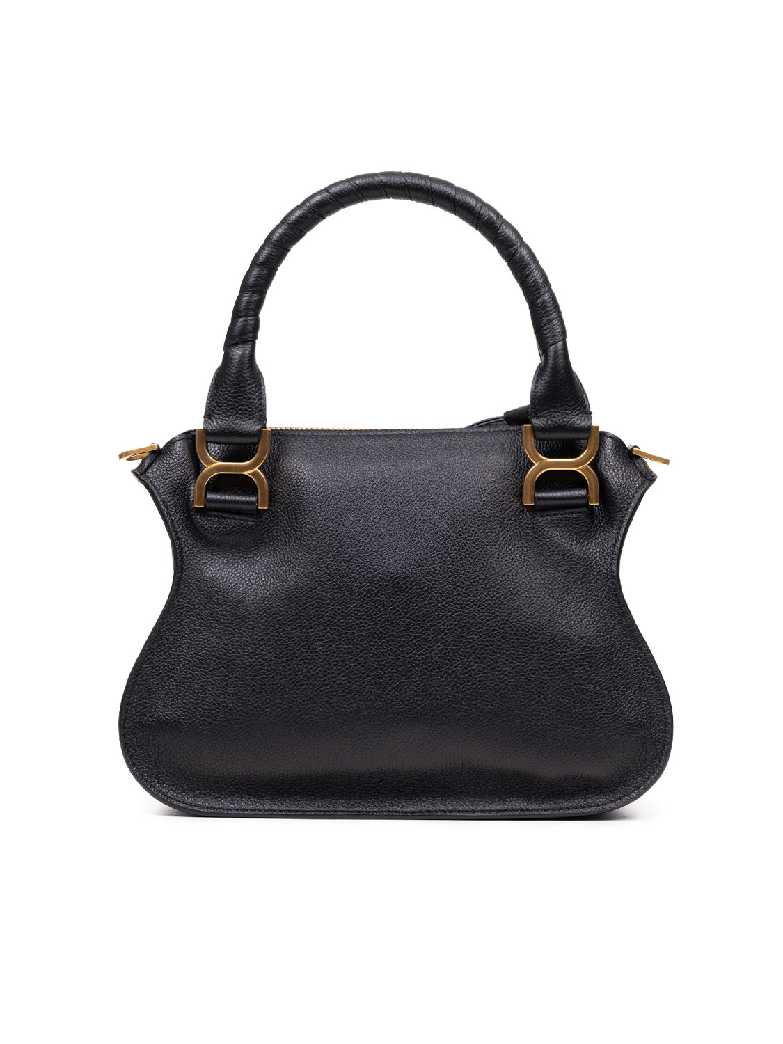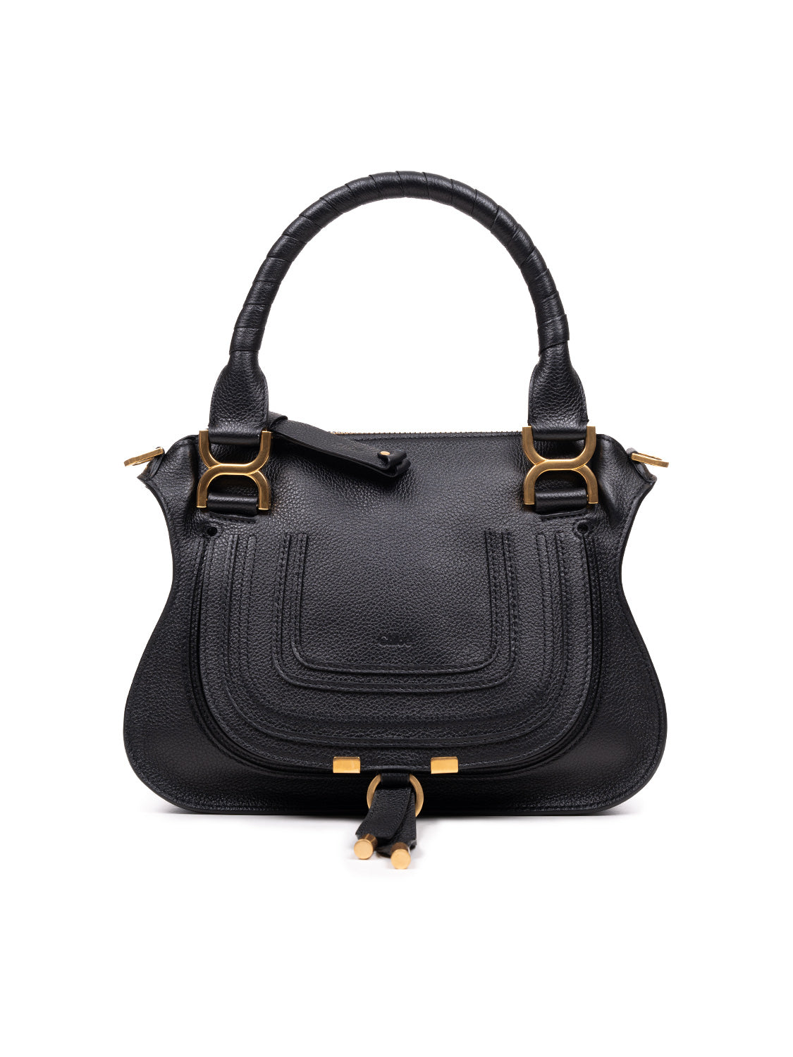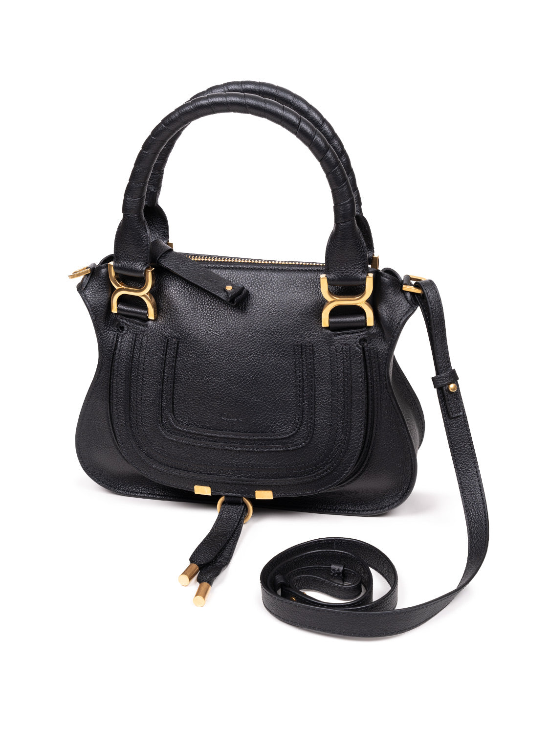 Diese kompakte Tasche aus genarbtem Kalbsleder ist eine verkleinerte Version der legendären Marcie Handtasche. Klare Linien und ein konturiertes Design verleihen ihr eine lockere Silhouette, während handumwickelte Ledergriffe und X-förmige Schnallen ein raffiniertes Finish schaffen. Mit zwei Griffen und einem abnehmbaren Schulterriemen bietet sie vielseitige Tragemöglichkeiten.