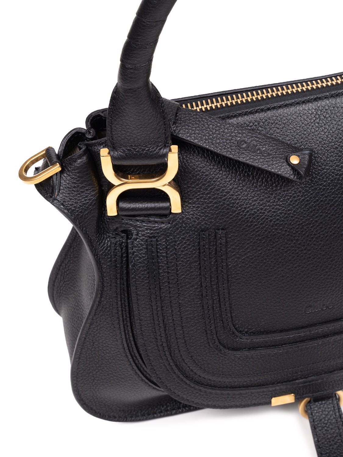 Die Marcie Taschenlinie von Chloé verbindet feminine Eleganz mit einem 70er-Jahre-Folkstil. Sattelnähte und glänzende Messingdetails verleihen der Tasche einen einzigartigen, femininen Touch.