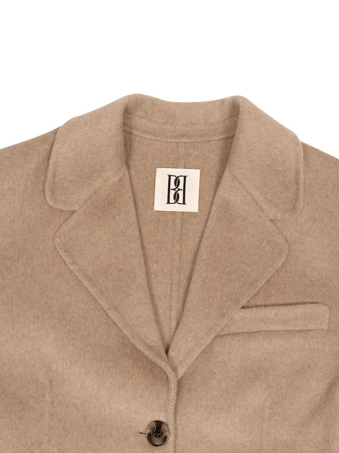 Die einreihiger Blazerjacke Hellen aus weicher, hochwertiger Wolle verbindet klassische Maßarbeit mit femininer Eleganz. Er ist so konzipiert, dass er an kühlen Tagen im Freien genauso überzeugt wie als stilvolle Layering-Option im Innenbereich. Der einreihige Knopfverschluss, das fein gearbeitete, gekerbte Revers und zwei dezente Vordertaschen verleihen dem Design Struktur und Stil. Ein schmaler, abnehmbarer Taillengürtel betont die Silhouette und sorgt für vielseitige Stylingmöglichkeiten – offen getragen für einen lässigen Look oder tailliert für eine definierte Form. Ein zeitloser Begleiter mit moderner Ausstrahlung.