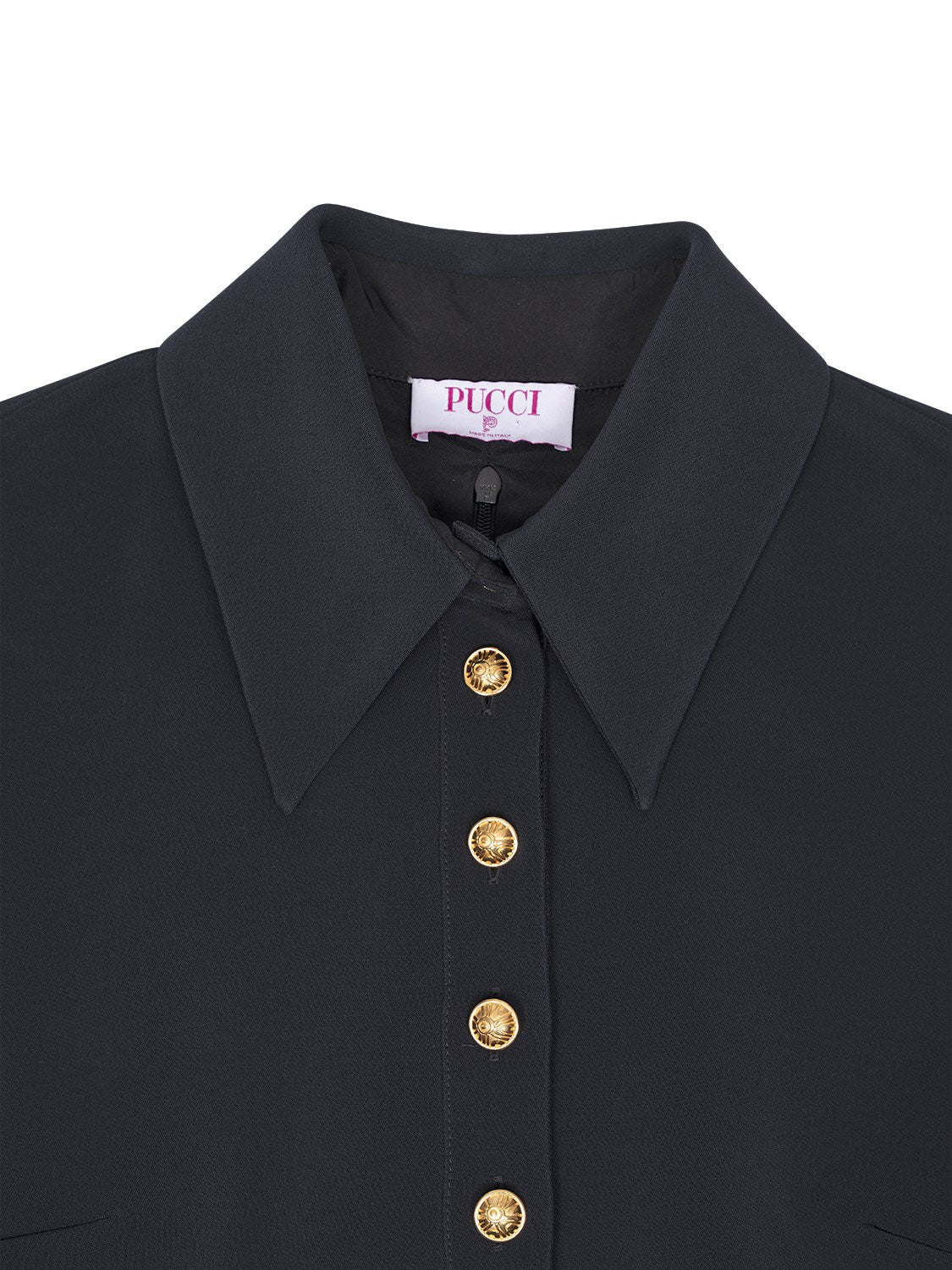 Dieses kurze Kleid von Pucci überzeugt durch seinen spitzen Kragen, die schmal geschnittenen Ärmel und die liebevoll gestalteten Knopfdetails, die eine harmonische Verbindung aus präziser Schneiderkunst und femininer Eleganz schaffen. Das taillierte Oberteil umspielt die Figur auf vorteilhafte Weise und betont die Silhouette, während der ausgestellte Rock für eine verspielte Leichtigkeit und dynamische Bewegung sorgt. Diese ausgewogene Kombination aus klarer Struktur und fließender Leichtigkeit verleiht dem Kleid einen unverwechselbaren Charakter – typisch für den stilvollen und modernen Look von Pucci. Ob bei besonderen Anlässen oder im Alltag, dieses Kleid ist ein vielseitiges Statement-Piece, das sich mühelos zu verschiedenen Styles kombinieren lässt.