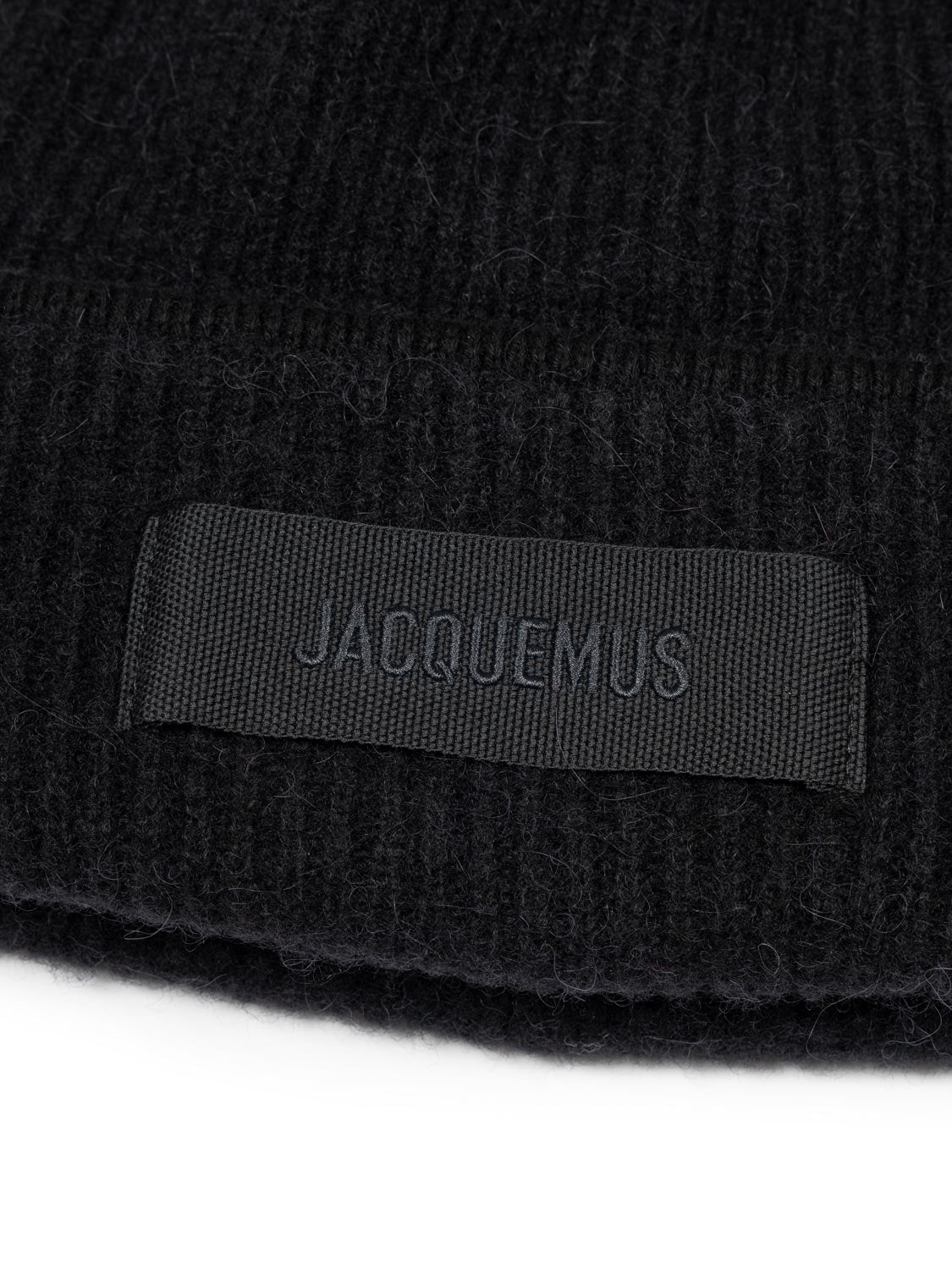 Die Gros Grain Logo Beanie von Jacquemus verbindet schlichte Ästhetik mit feiner Handwerkskunst. Aus einem weichen Wolle-Alpaka-Mix gefertigt, bietet sie angenehme Wärme und passt sich dank elastischem Rippenstrick komfortabel der Kopfform an. Der breite, tonal verstärkte Umschlag sorgt für stabilen Sitz und formgebenden Halt. Ein Ton-in-Ton gesticktes Jacquemus-Logo auf der Vorderseite verleiht der Mütze einen dezenten, markentypischen Akzent – ein stilvolles Essential für kühle Tage.