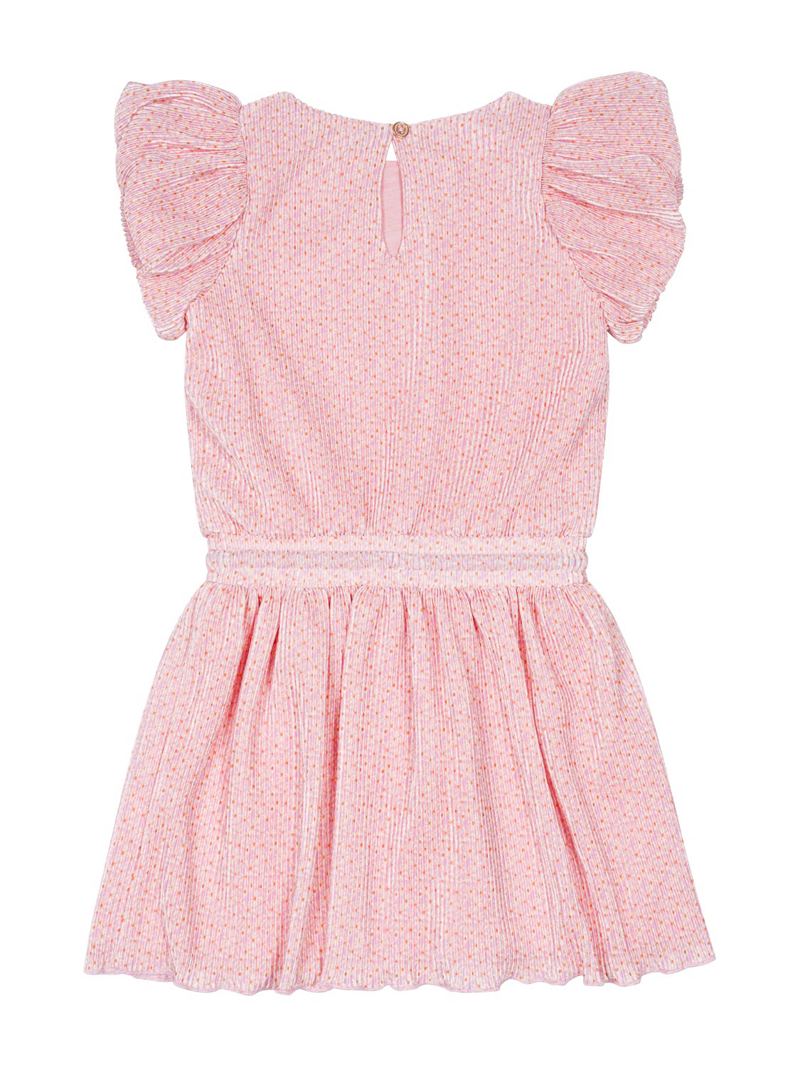 Das Miron Plissee Kleid in Rosa von NONO kreiert mit seinem plissierten Design und dem leuchtenden Allover-Blumen-Print ein raffiniertes Must-have für die Mädchen-Garderobe. Die wunderbar weiche und leichte Materialqualität verspricht angenehme Tragemomente, während ein seidiges Innenfutter zusätzlichen Komfort bietet. Zarte Flügelärmel und ein ausgestellter Rock mit Kordelzug verleihen dem Kleid das gewisse Etwas. Auf der Brust rundet eine Logo-Plakette das Kleid harmonisch ab. Im Nackenbereich erleichtert ein Schlüsselloch-Knopfverschluss das An- und Ausziehen.