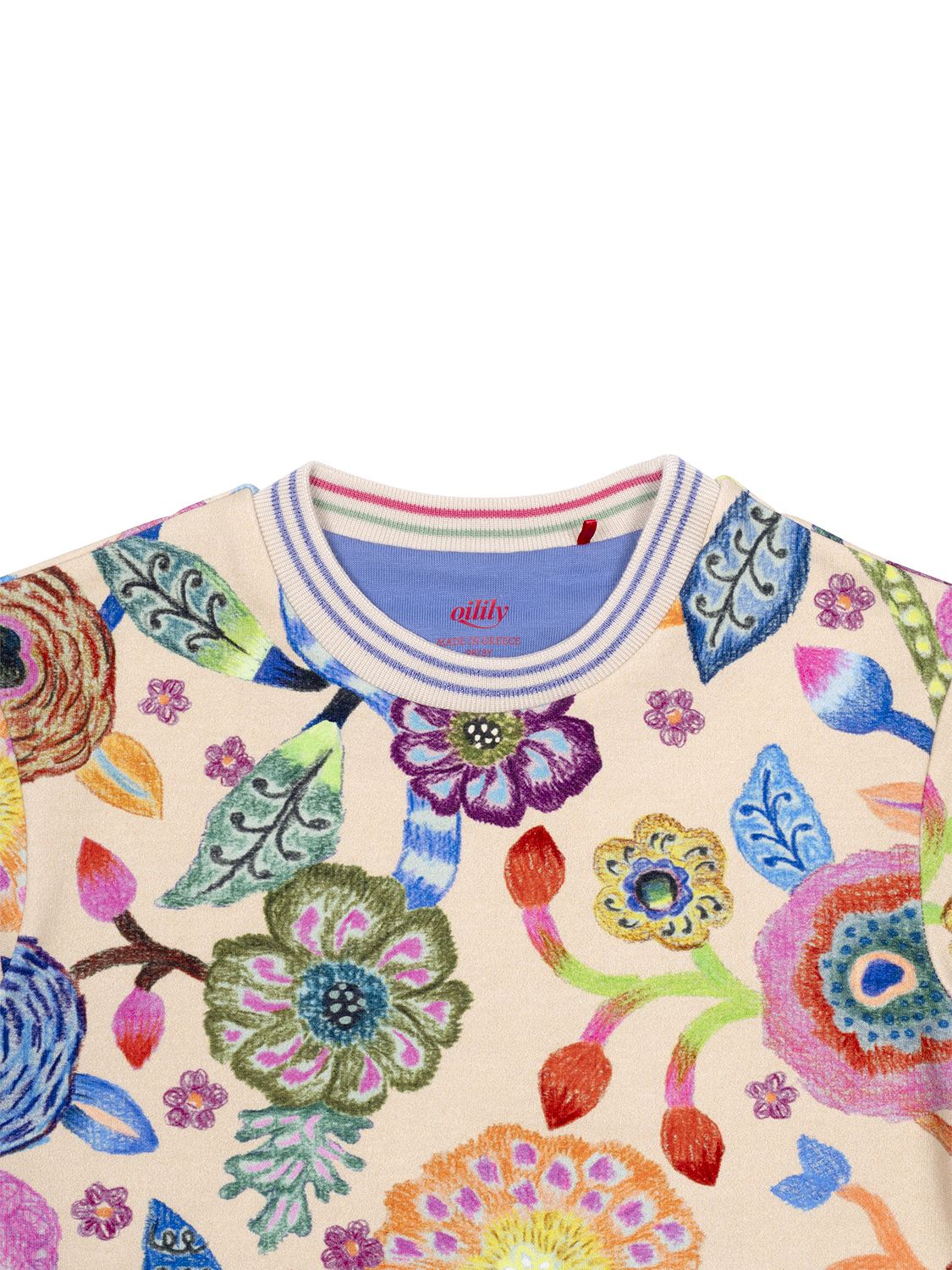 Dieses bezaubernde Kleid von Oilily zieht mit seinem farbenprächtigen Allover-Blumen-Print alle Blicke auf sich. Es vereint Stil und Komfort auf perfekte Weise. Die einzigartigen Blumen-Motive des Tern Tides Prints wurden mit Wachsmalern gezeichnet. Neben einem Rundhals-Rippstrickkragen im Streifen-Design verfügt das Kleid über lange Ärmel mit elastischen Bündchen sowie einen Kordelzug in der Taille, der dem Look ein raffiniertes Finish verleiht.
