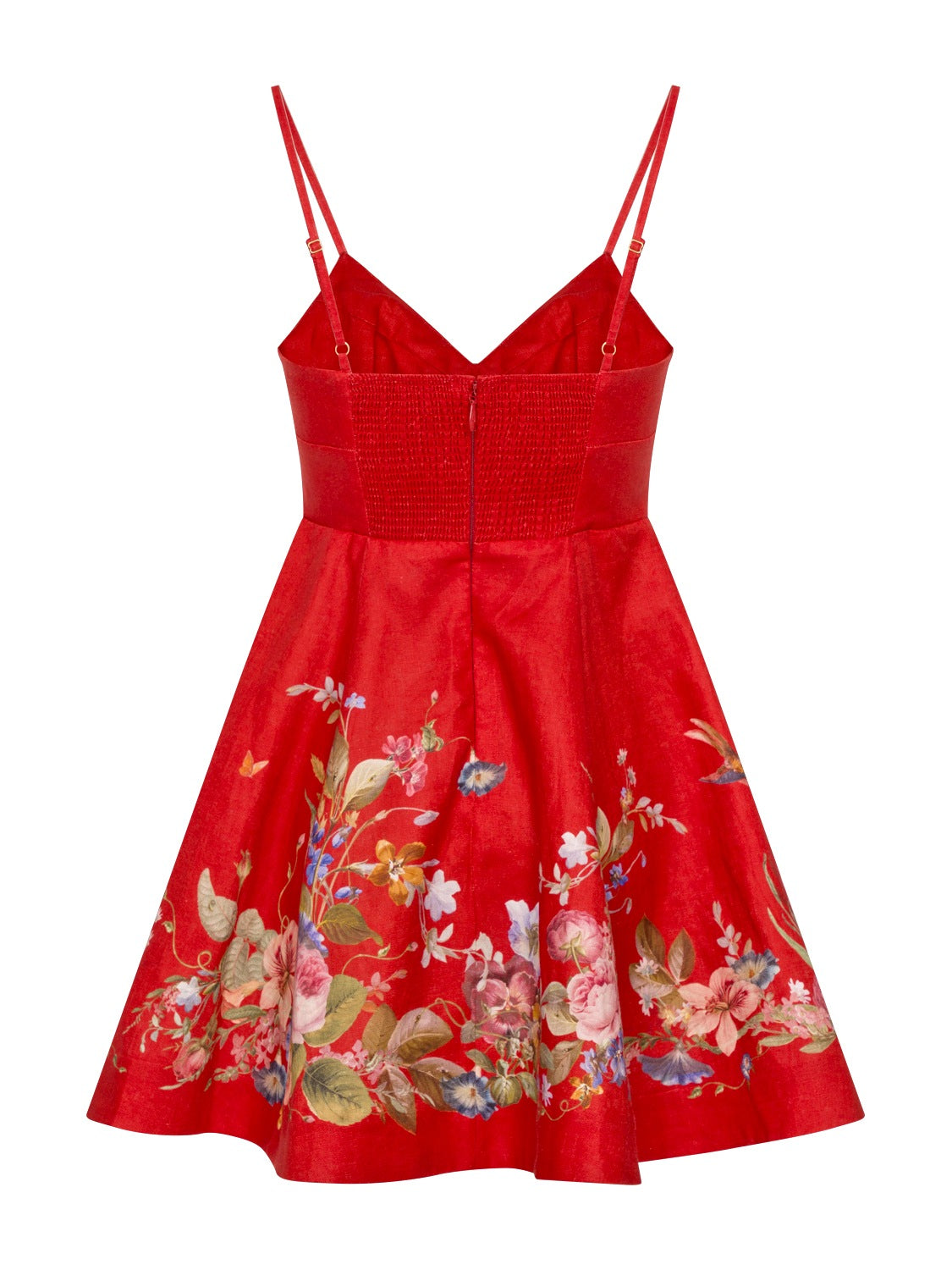 Das Kleid von Zimmermann besticht durch einen zarten Floral-Print und eine elastische, geraffte Rückenpartie, die für perfekten Sitz und hohen Tragekomfort sorgt. Die Mini-Länge und der elegante V-Ausschnitt verleihen dem Modell eine feminine, leichte Silhouette. Verstellbare Schulterträger ermöglichen eine individuelle Anpassung, während Hakenverschluss und verdeckter Reißverschluss am Rücken für einen nahtlosen, eleganten Abschluss sorgen. Praktische Seitentaschen in den Nähten machen das Kleid zugleich funktional und stilvoll. Ein vielseitiges Sommer-Essential, das romantische Eleganz mit zeitgemäßem Design vereint.
