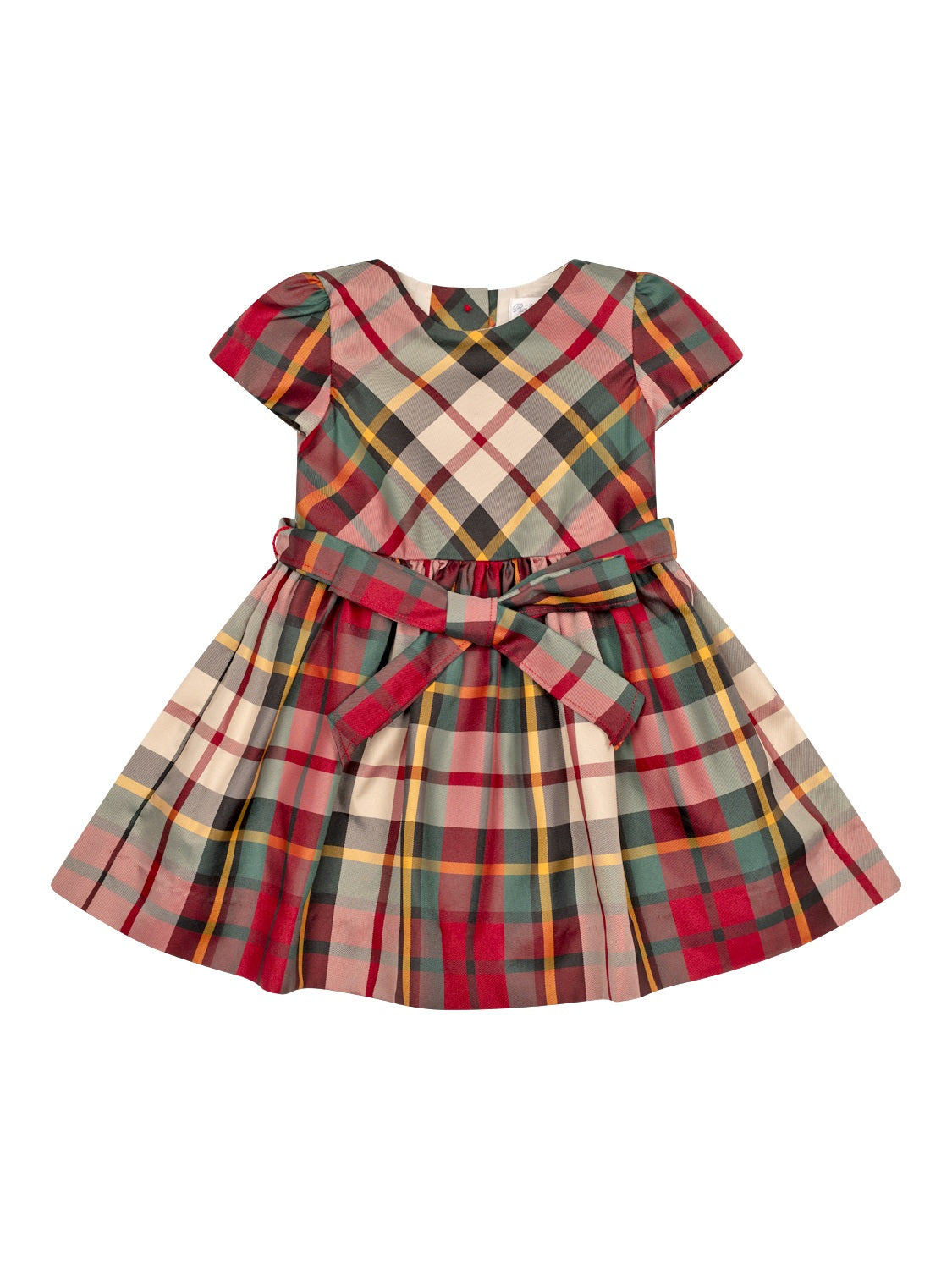Dieses edle Kleid von Ralph Lauren besticht mit klassischer Eleganz und einem garngefärbten Karo-Design in Rot, Creme und Grün. Das komfortable Rundhals-Modell erhält von zarten Flügelärmeln sowie einem zur Schleife gebundenen Taillenband ein verspieltes Finish, während ein ausgestellter Rock mit geraffter Taille den bezaubernden Look gekonnt vollendet.