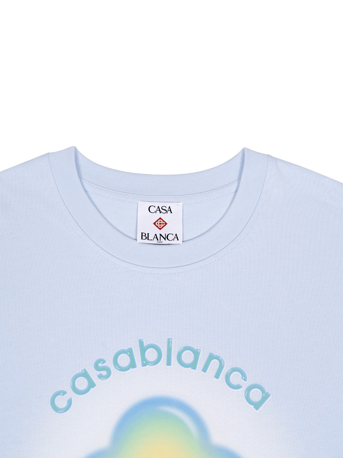 Das T-Shirt mit Logo von Casablanca vereint modernen Minimalismus mit subtiler Raffinesse. Der klassische, gerade Schnitt und der feine Rundhalsausschnitt unterstreichen den eleganten Charakter, während der pastellfarbene, verschwommene Print in Hellblau und der sanft geschwungene „casablanca“-Schriftzug einen stilvollen Akzent setzen. Aus hochwertiger Bio-Baumwolle gefertigt, bietet es angenehmen Tragekomfort, Langlebigkeit und eine glatte Stoffoberfläche – ein zeitloses Must-have für anspruchsvolle Outfits.