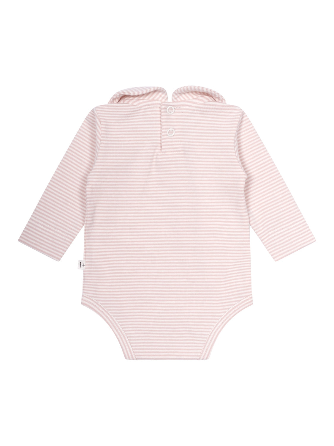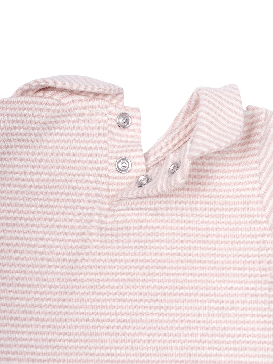 Der bezaubernde Body Lourdes in Nude von Tartine et Chocolat besticht mit einer Herstellung aus hochwertiger, besonders weicher Stretch-Bio-Baumwolle, während ein klassischer Bubi-Kragen den edlen Charakter unterstreicht. Mit seinem dezenten Streifen-Design liegt der Body voll im Trend und kreiert ein vielseitig kombinierbares Essential für die Babygarderobe. Neben langen Ärmeln verfügt das Modell über eine Druckknopfleiste im Nackenbereich sowie praktische Druckknöpfe im Windelbereich.