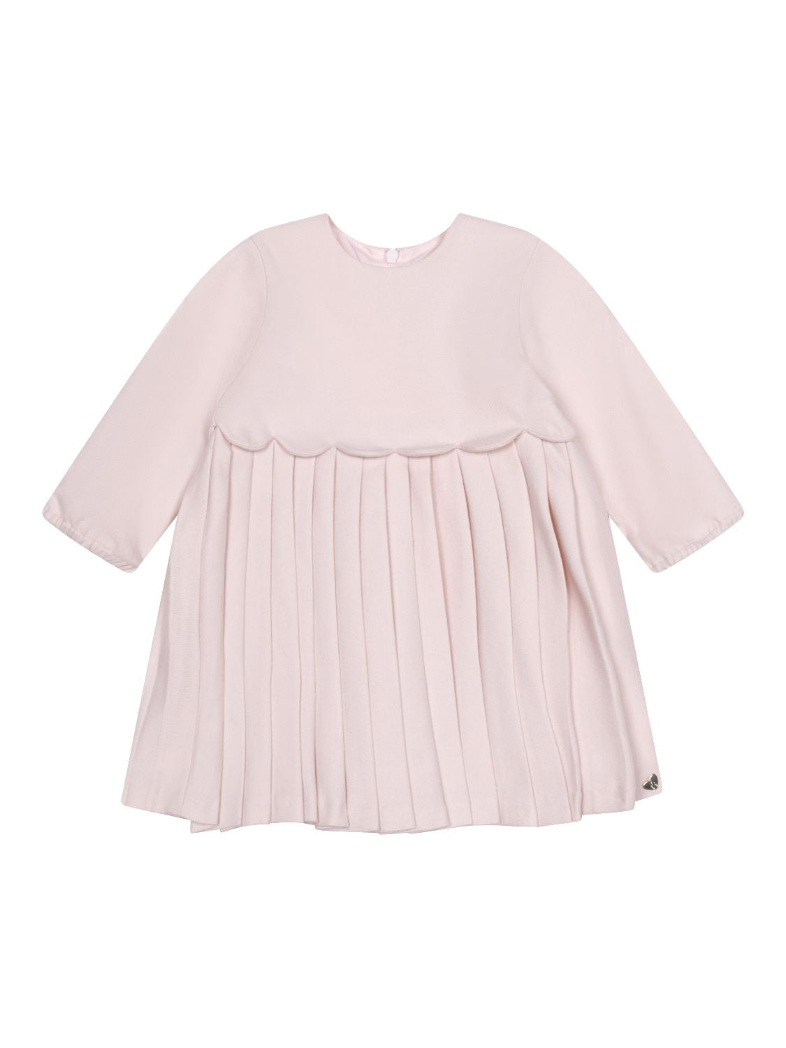 Neben einem klassischen Rundhalsausschnitt verfügt das Kleid über lange Ärmel mit elastischen Bündchen sowie einen ausgestellten Rock. Auf der Vorderseite wird der charmante Look von einer charakteristischen Logo-Plakette in Herzchenform labeltypisch vollendet.