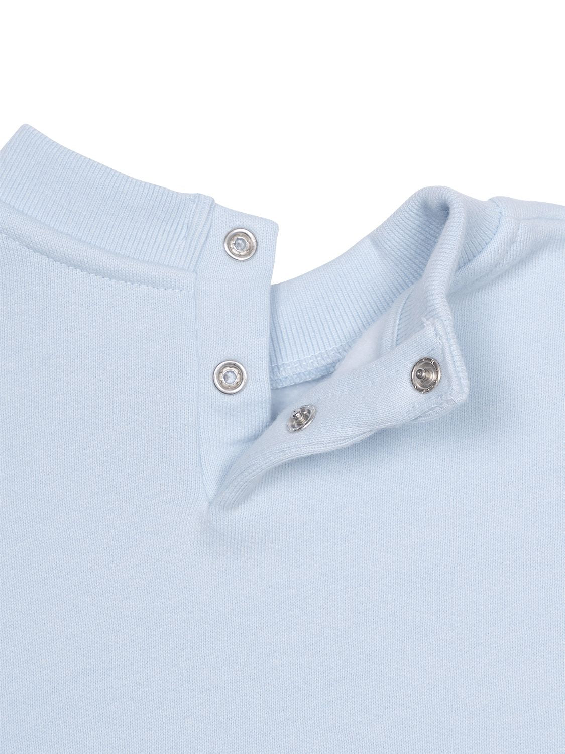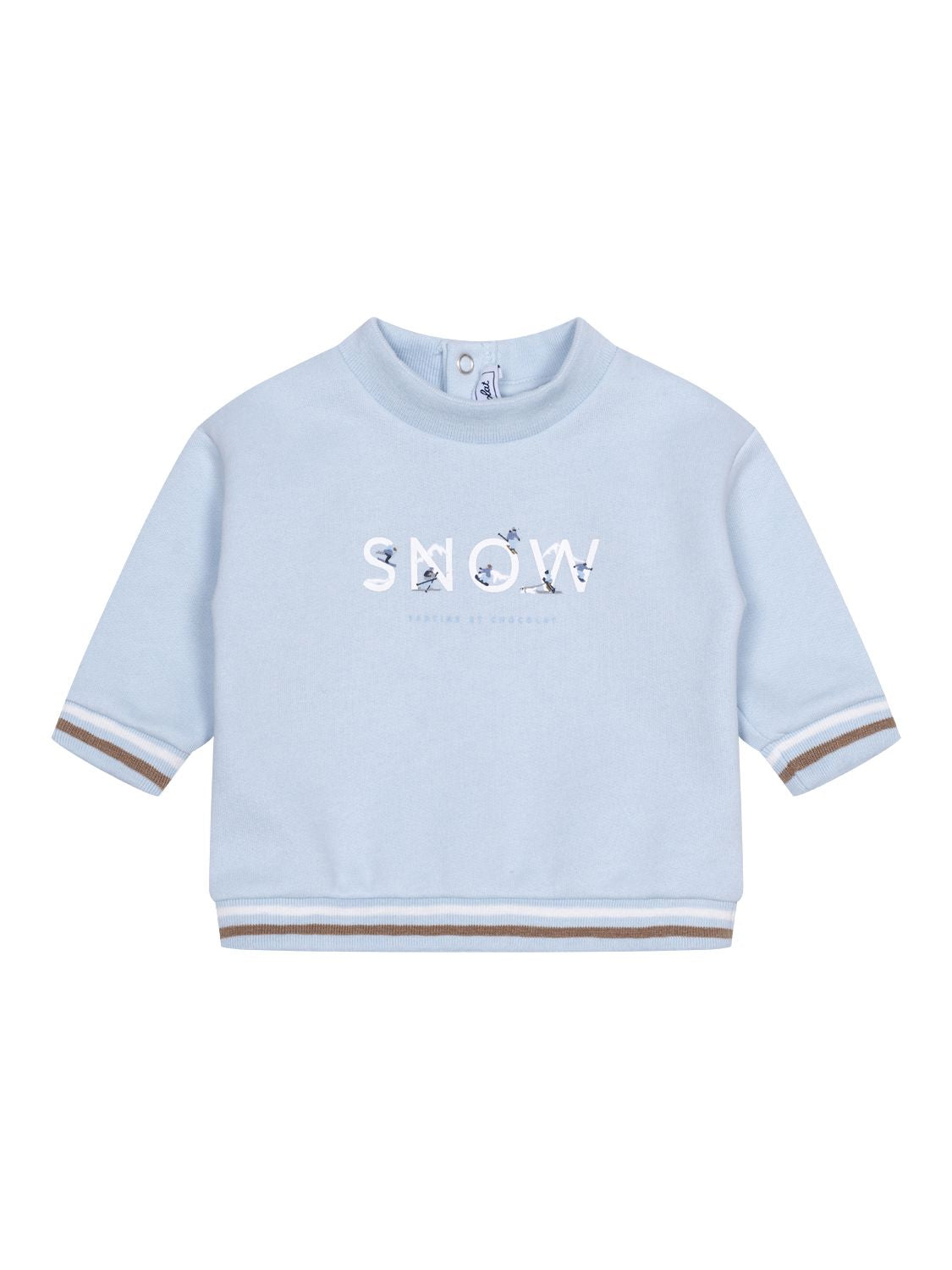Dieses süße Sweatshirt in Hellblau von Tartine et Chocolat wird aus einem weichen Baumwollgemisch gefertigt und verspricht einen kuschligen Tragekomfort. Auf der Vorderseite präsentiert das Modell den raffiniert gestalteten Print 'Snow', welcher dem Look ein saisonales Finish verleiht. Kontrastierende Streifen an Ärmelbündchen und Saum runden das Gesamtbild gekonnt ab. Zudem ist der Pullover mit einem gerippten Rundhalsausschnitt, langen Ärmeln sowie einer normalen Passform versehen. Im Nackenbereich erleichtert ein praktischer Druckknopfverschluss das An- und Ausziehen.