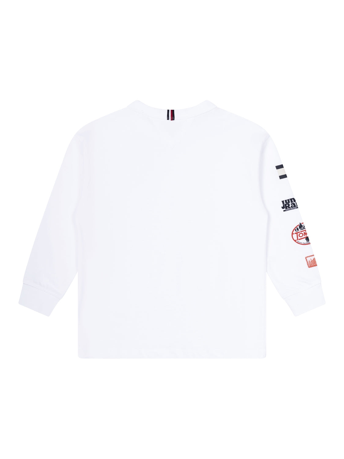Dieses lässige Langarm-T-Shirt in Weiß von Tommy Hilfiger besteht aus reiner Baumwolle und verspricht ein angenehmes Tragegefühl. Coole Multi-Prints am Ärmel und auf der Brust verleihen dem Design eine raffinierte Note. Neben einem gerippten Rundhalsausschnitt verfügt das Shirt über lange Ärmel mit gerippten Bündchen sowie eine normale Passform. Von einem Signaturband im Nacken sowie der ikonischen Tommy Hilfiger-Flaggenstickerei auf der Brust erhält das Modell ein labeltypisches Finish.