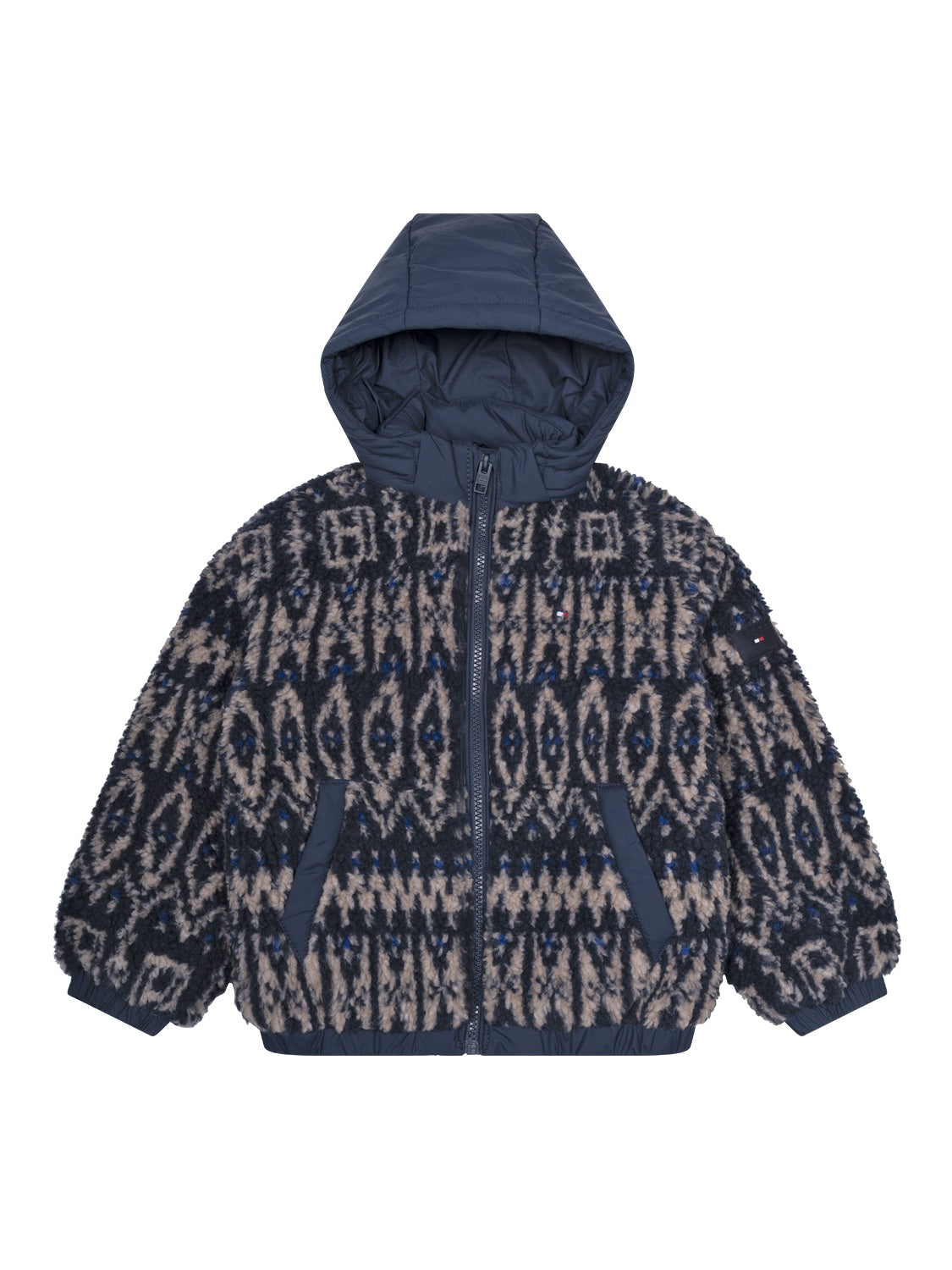 Diese Jacke in Marine von Tommy Hilfiger ist mit ihrem raffinierten Fairisle Muster ein absolutes Highlight für die Kindergarderobe und überzeugt mit einer Fertigung aus kuschelweichem Teddyfleece. Der extra flauschige, strukturierte Look wird von einem Stehkragen gekonnt ergänzt, während am Ärmel die ikonische Tommy Hilfiger-Flaggenstickerei dem Design ein labeltypisches Finish verleiht. Dank des weichen Futters sowie einer leichten Wattierung verspricht das Modell wohlige Wärme an kühlen Tagen.