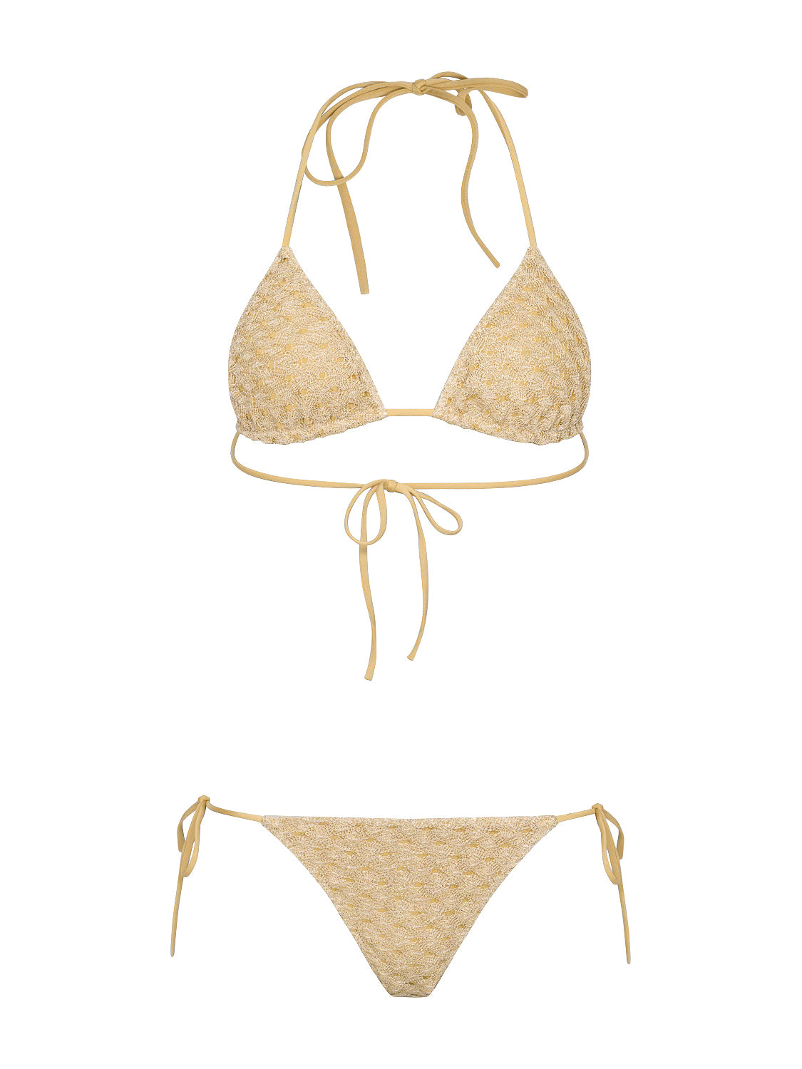 Dieser Bikini von Missoni überzeugt durch seine kunstvolle Gestaltung und exklusive Materialwahl. Das charakteristische Spinnennetzmuster entfaltet auf dem schimmernden Viskose-Lamé eine besondere Tiefe und verleiht dem Design eine raffinierte, moderne Eleganz. Die aufwendig gearbeitete Raschelverarbeitung sorgt für eine feine Struktur und ein angenehmes Tragegefühl. Verstellbare Bänder ermöglichen eine individuelle Anpassung und unterstreichen zugleich die feminine Silhouette. Ein stilvolles Modell, das luxuriöse Ästhetik und anspruchsvollen Komfort vereint – ideal für einen eleganten Auftritt am Strand oder Pool.