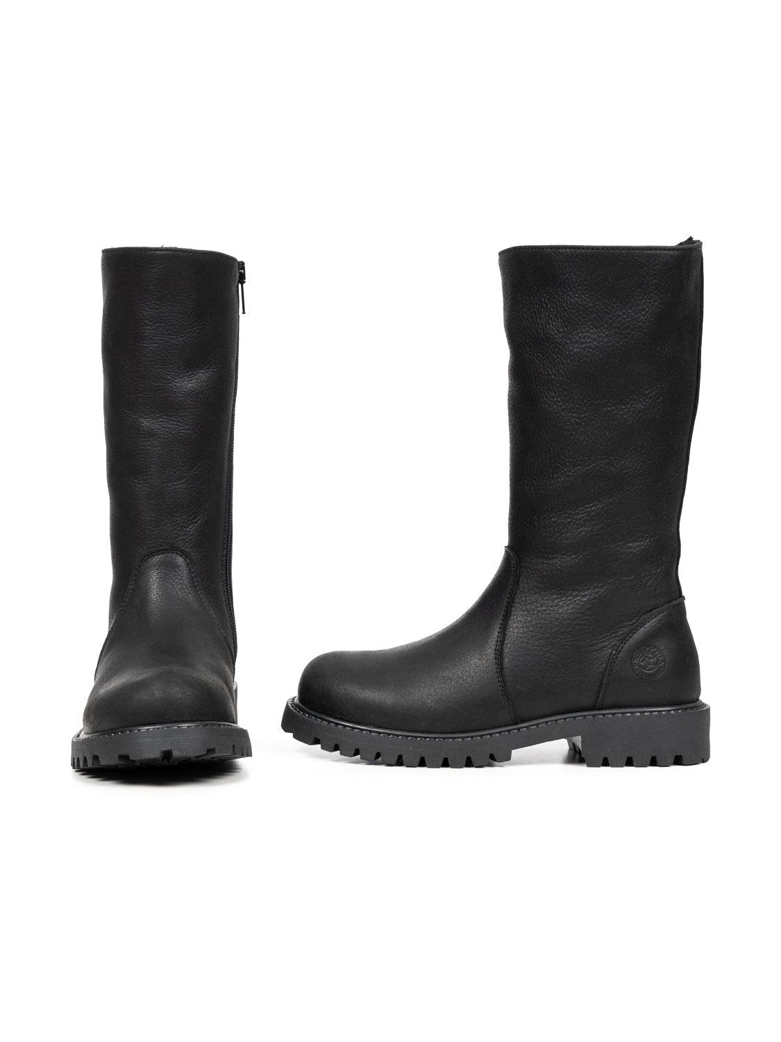 Hoher Schaffellstiefel mit Reißverschluss - Schwarz